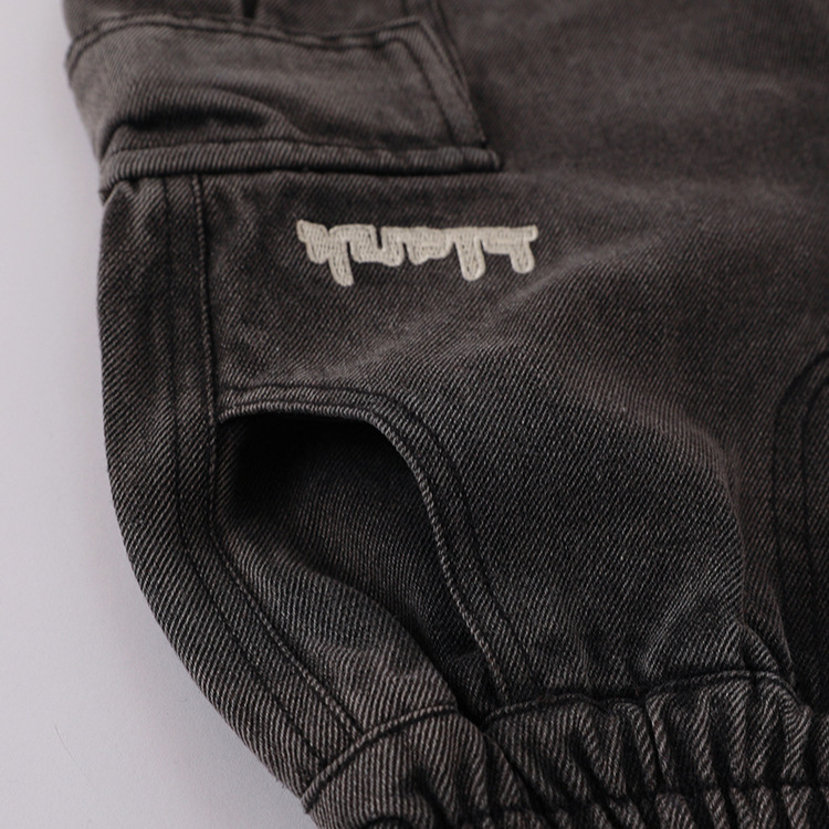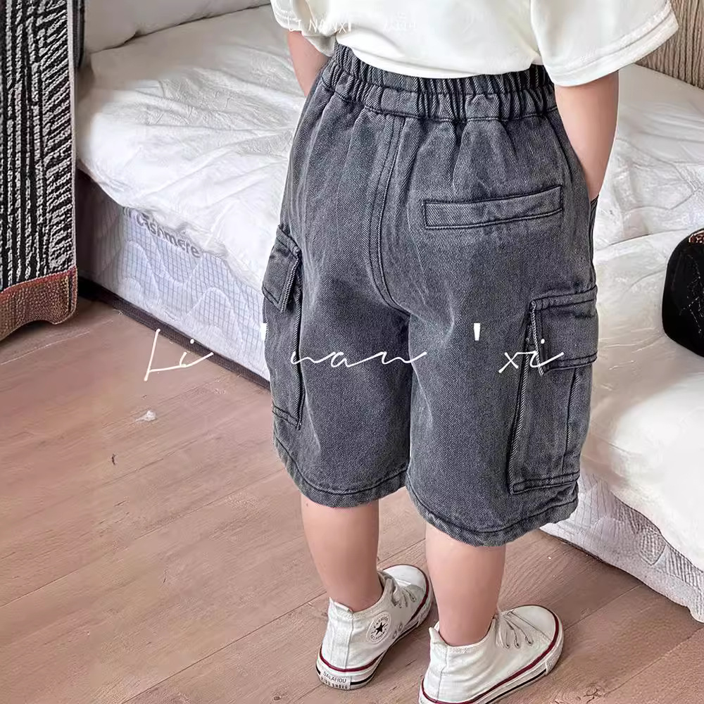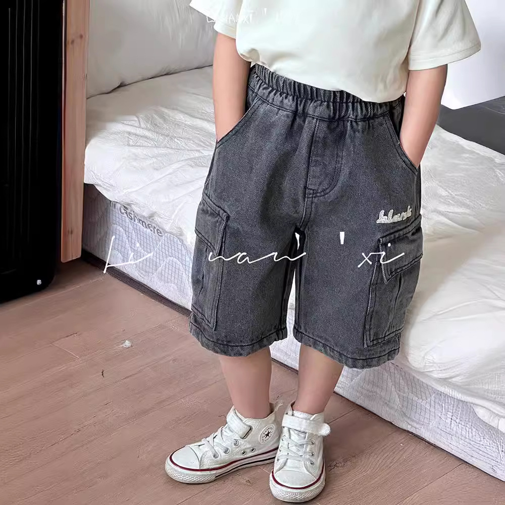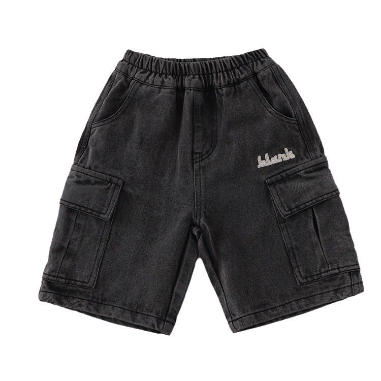 儿童牛仔短裤24夏新款男女童刺绣工装风立体口袋牛仔五分裤中裤