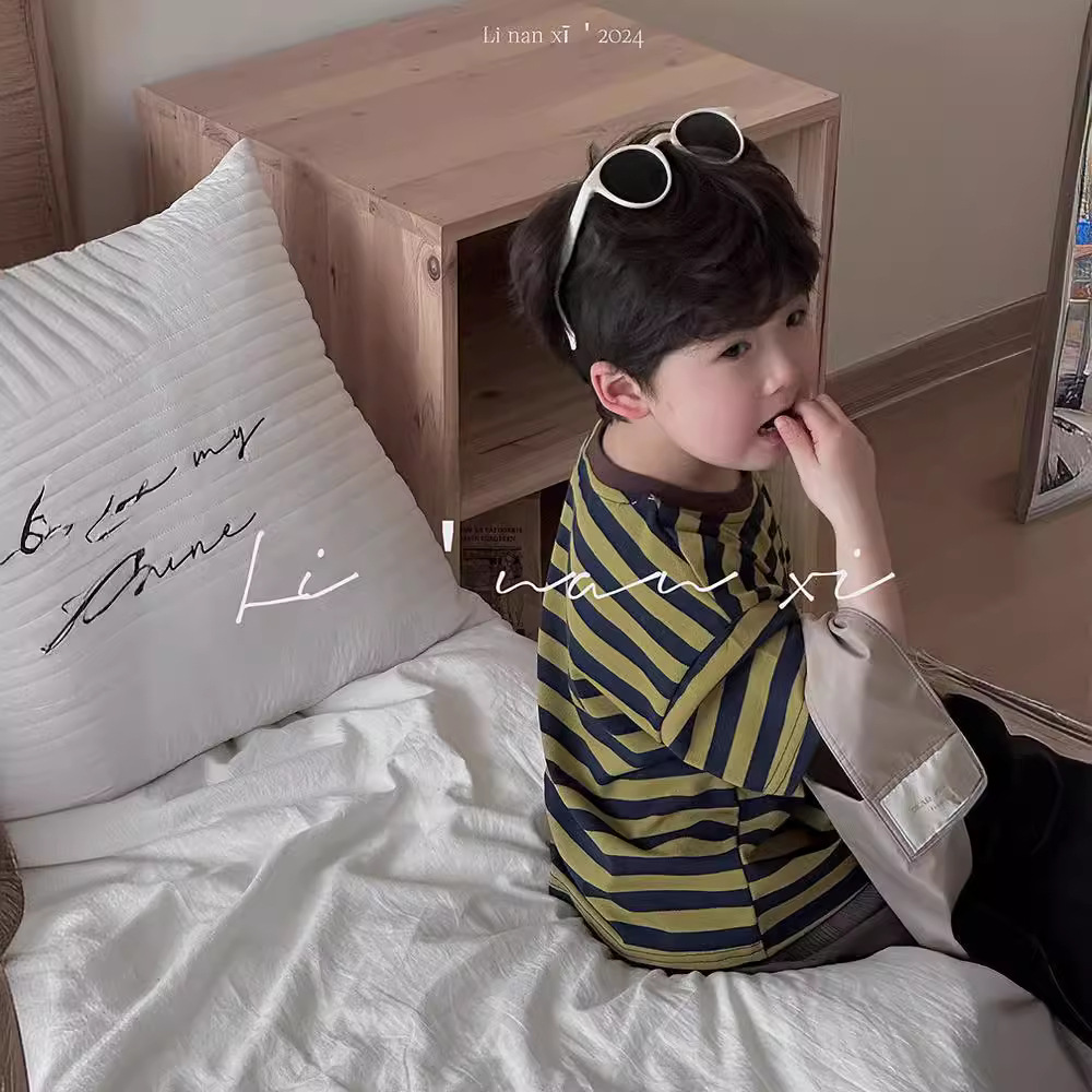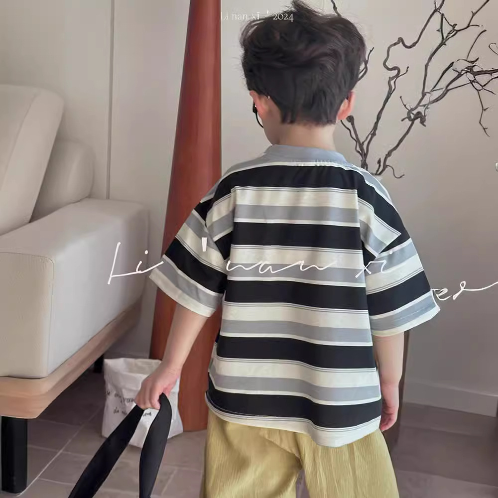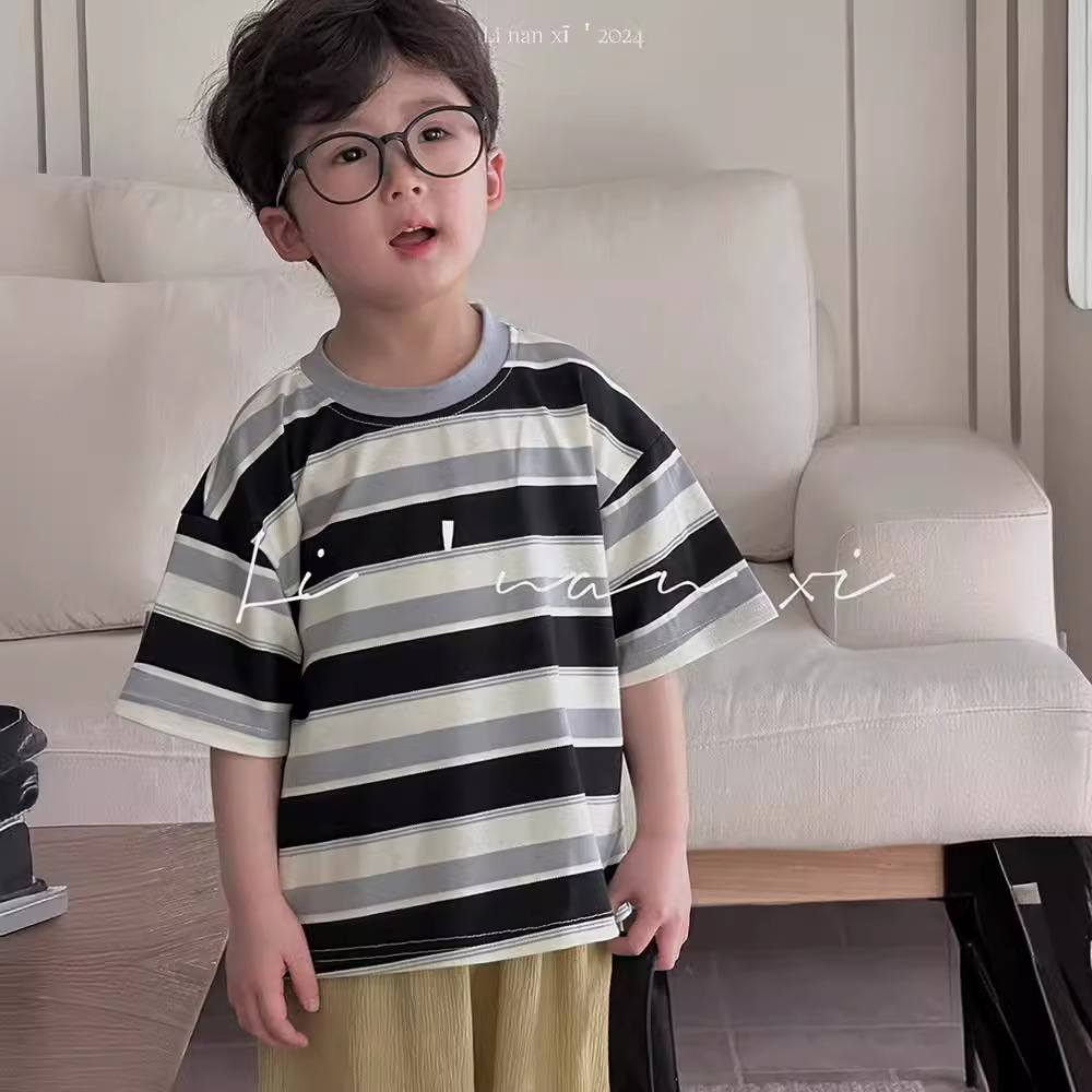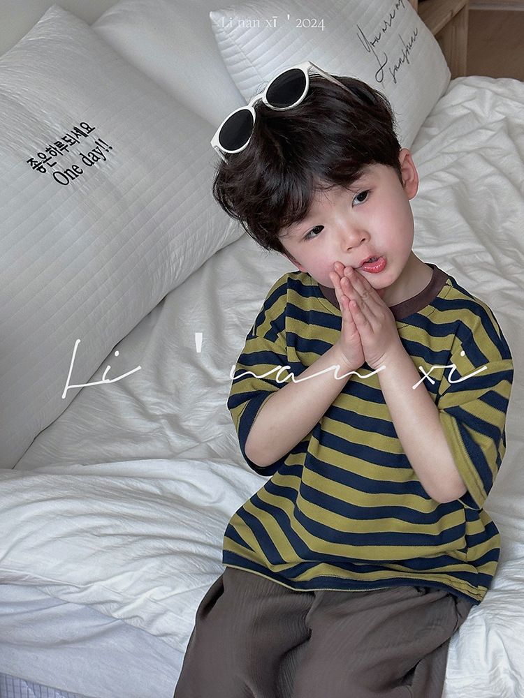 50085夏季新款儿童T恤男女童短袖T宝宝圆领衫短袖针织上衣条纹