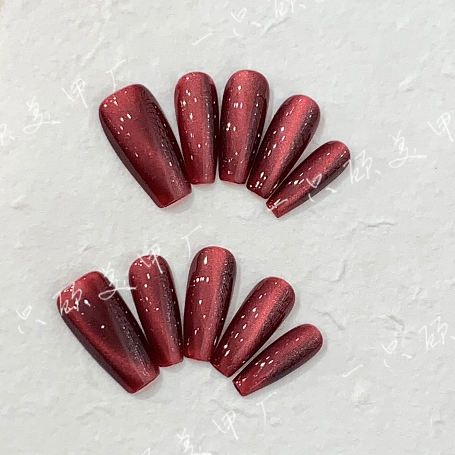 一只顾美甲厂【原创实拍】新年车厘子红简约侧光猫眼车厘子指甲