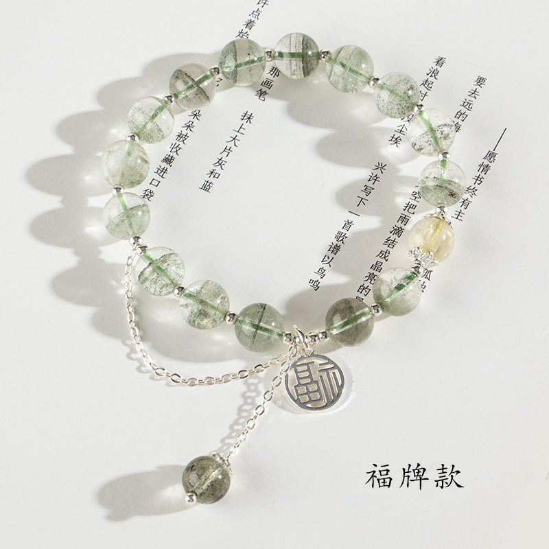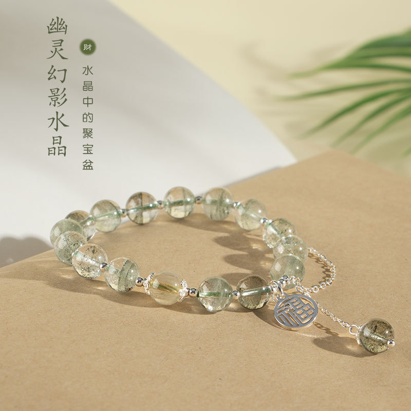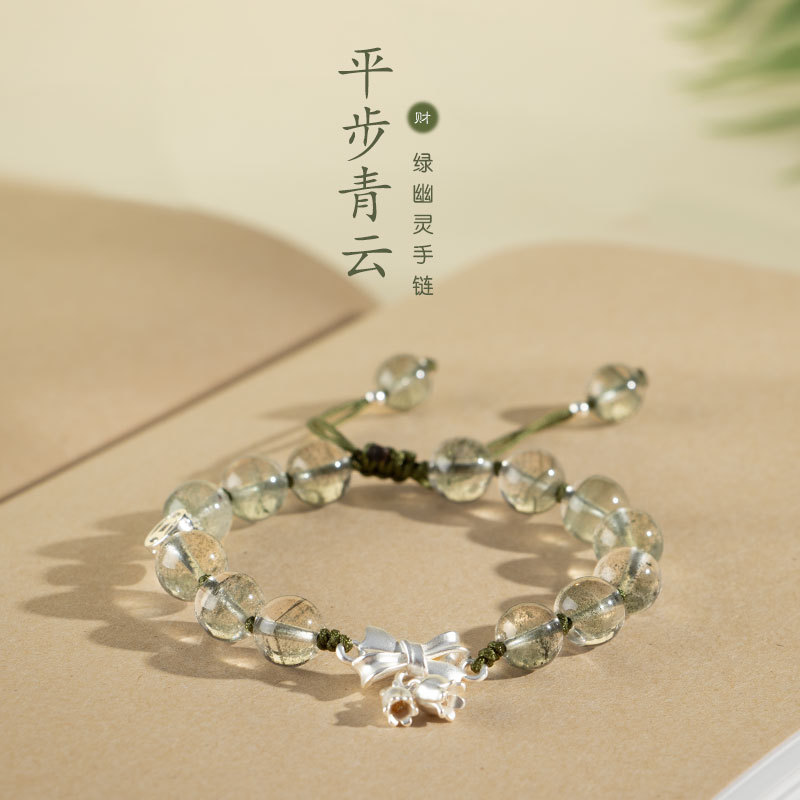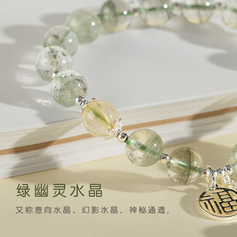 天然绿幽灵招财水晶手链女生简约小众古风串珠手串节庆出行饰品