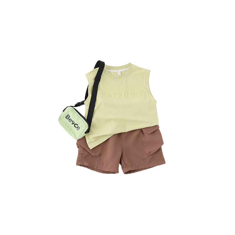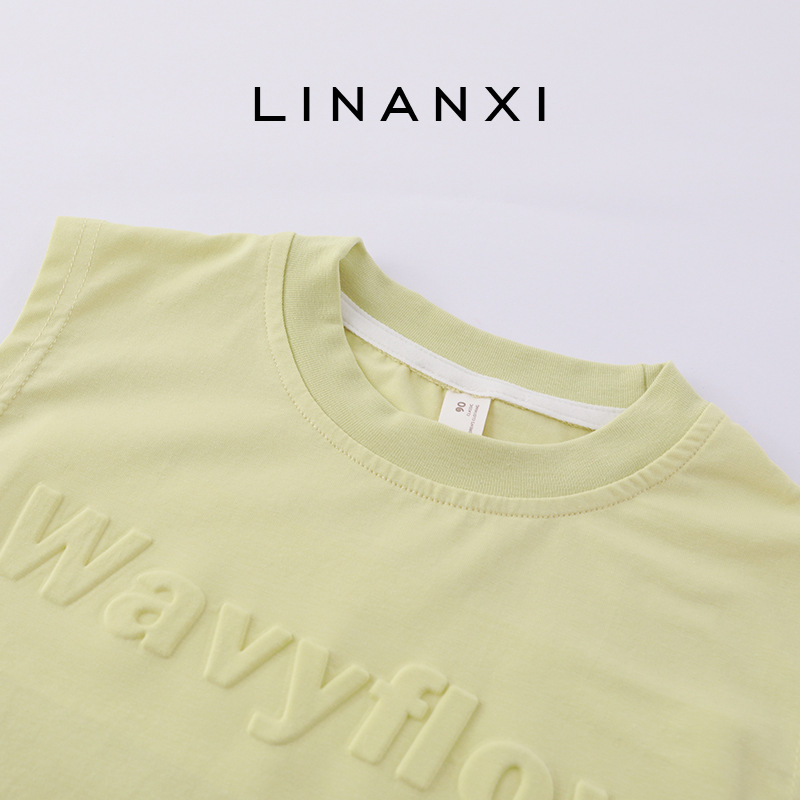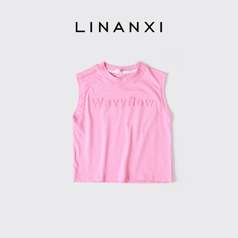 24年夏季新款儿童无袖时尚背心立体字母压花