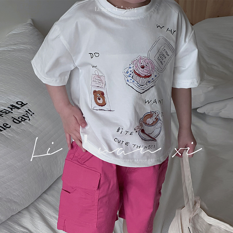 50107夏季新款儿童T恤男女童短袖T宝宝圆领衫短袖针织上衣数码印