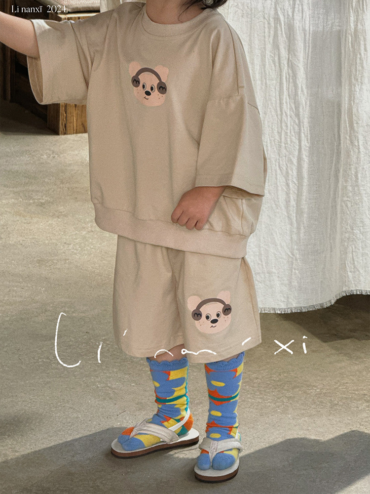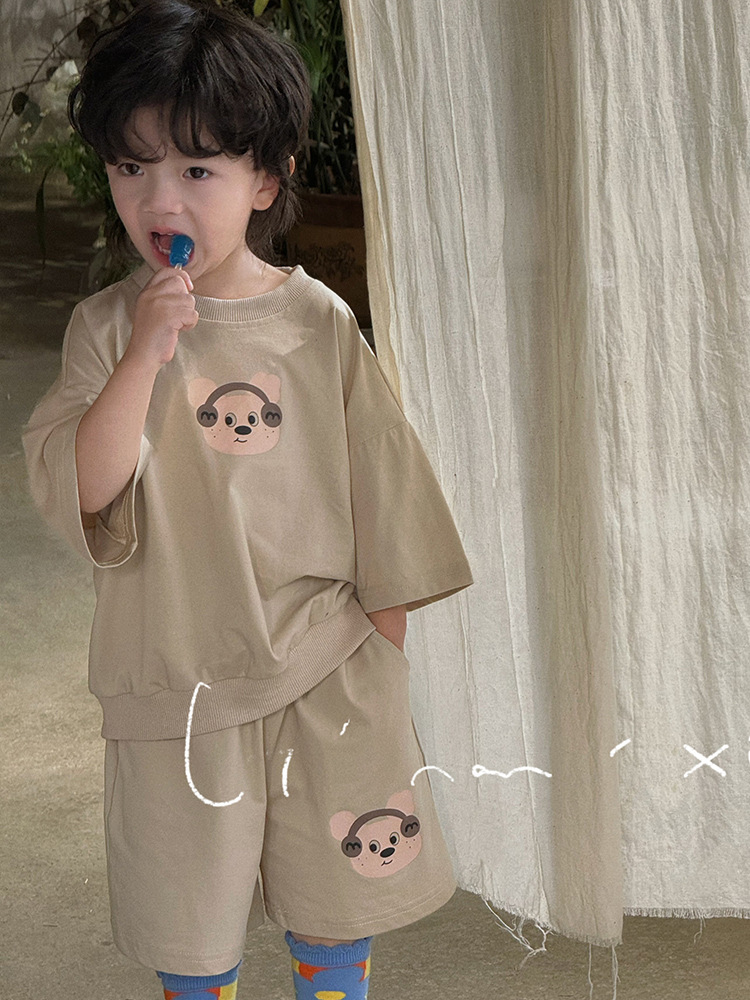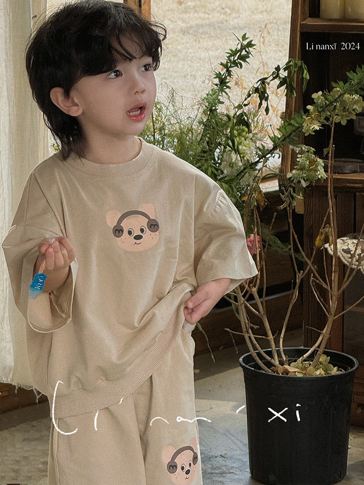 24夏新款男童套装儿童韩版男女童两件套3-8岁宝宝短袖短裤套装