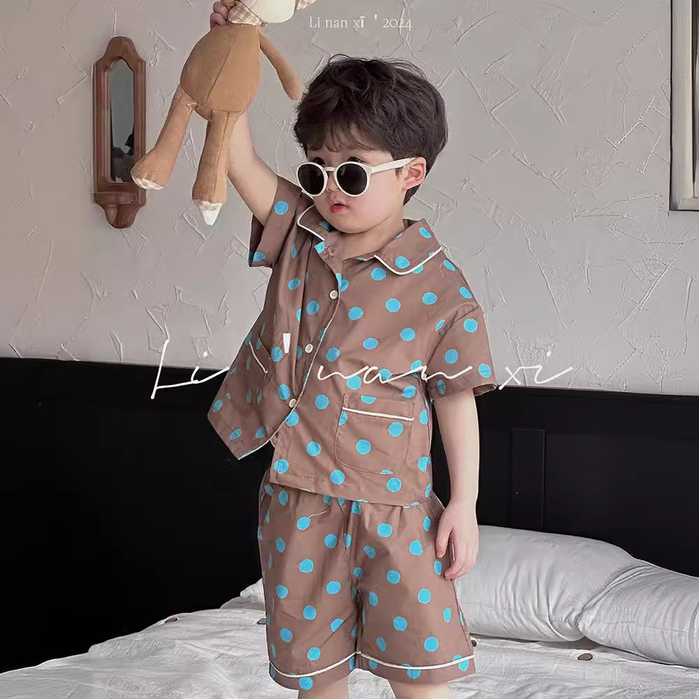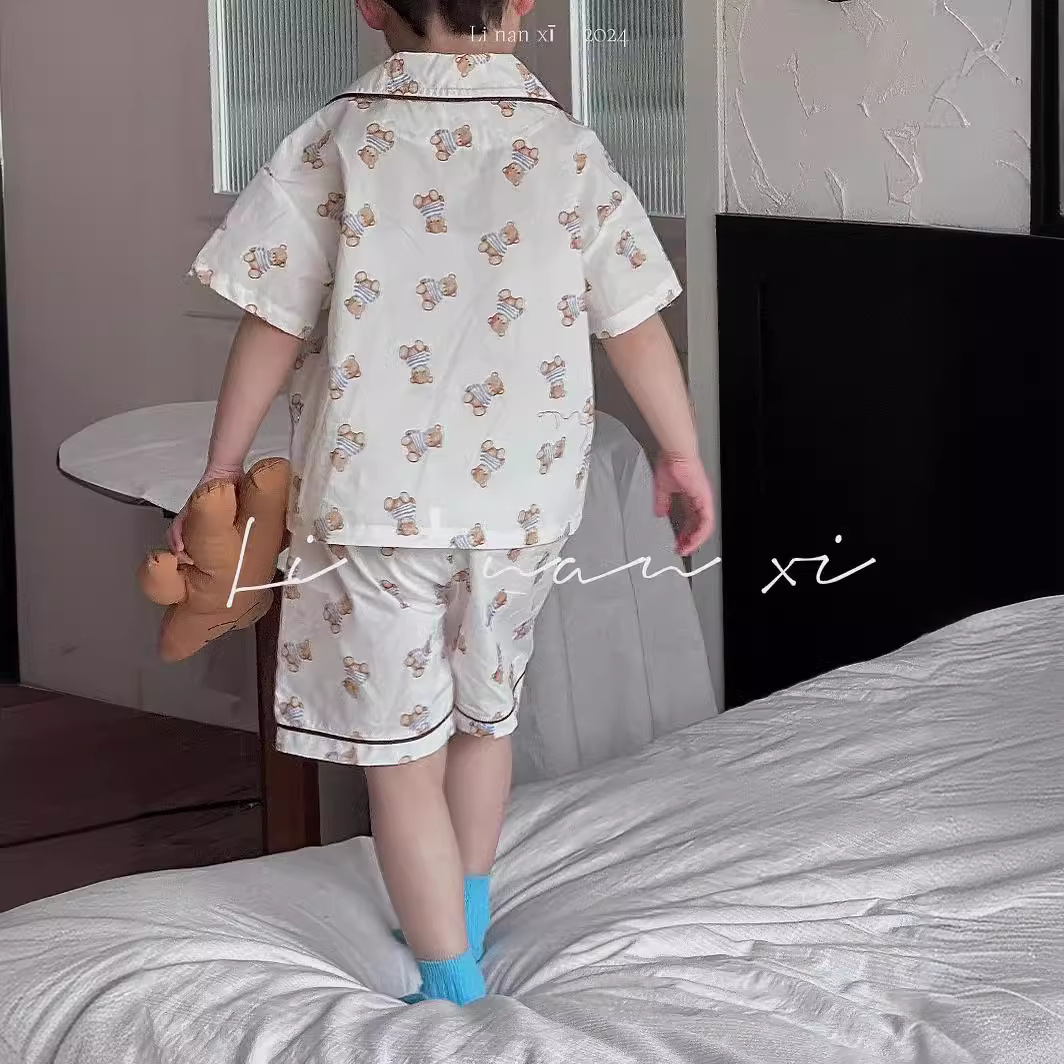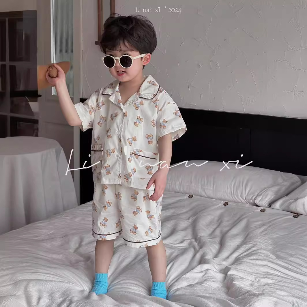 24夏新款儿童家居服套装韩版印花两件套宝宝睡衣短袖7分裤套装