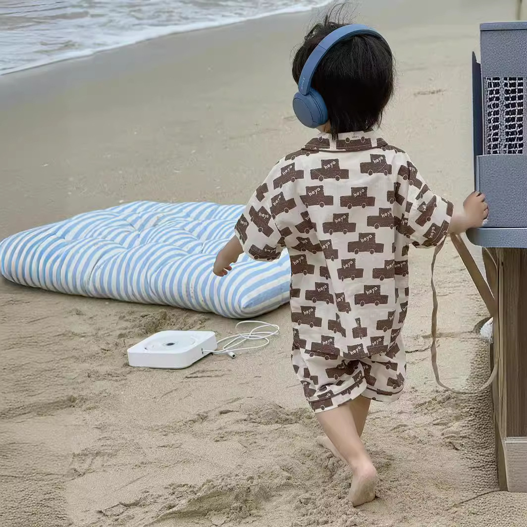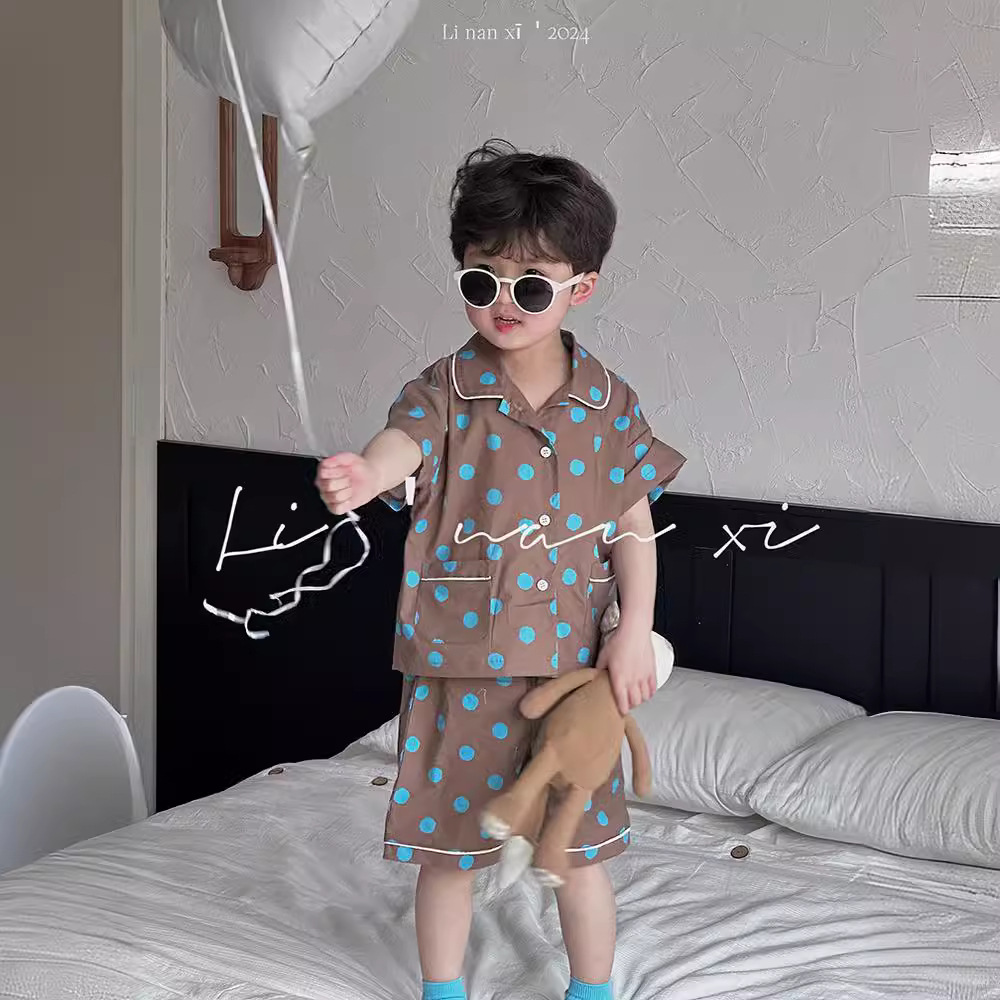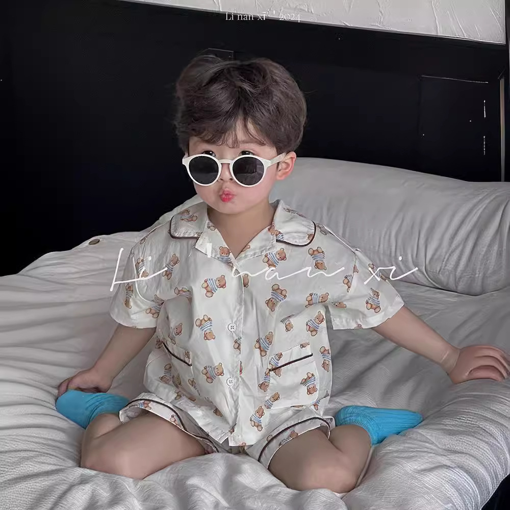 24夏新款儿童家居服套装韩版印花两件套宝宝睡衣短袖7分裤套装