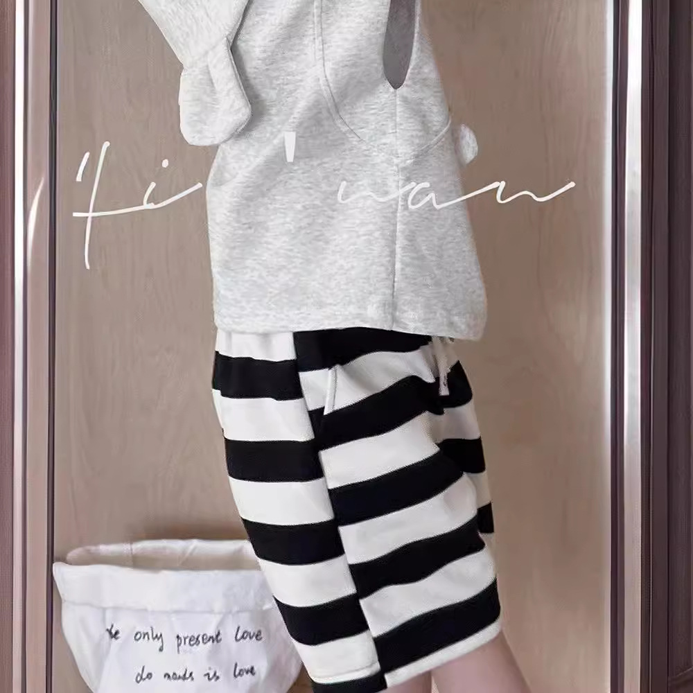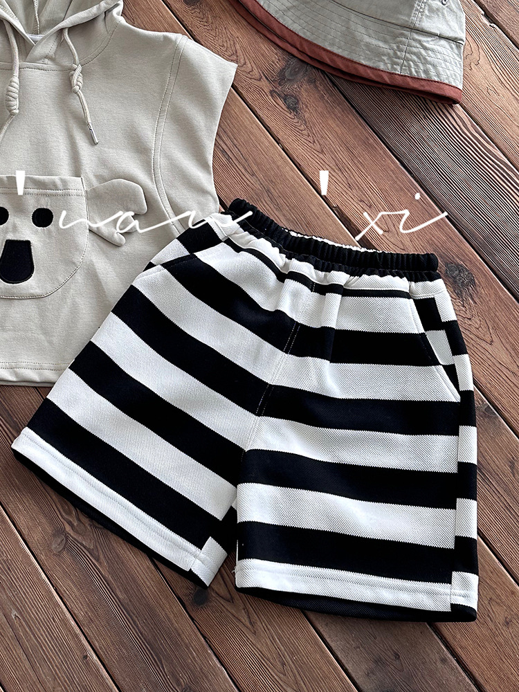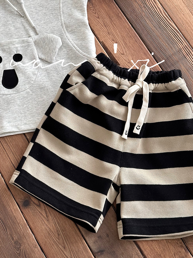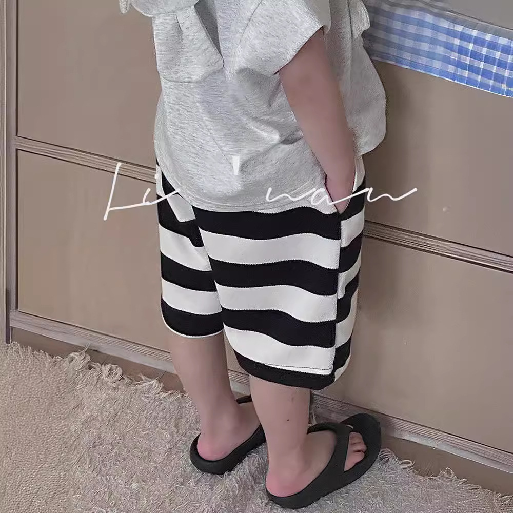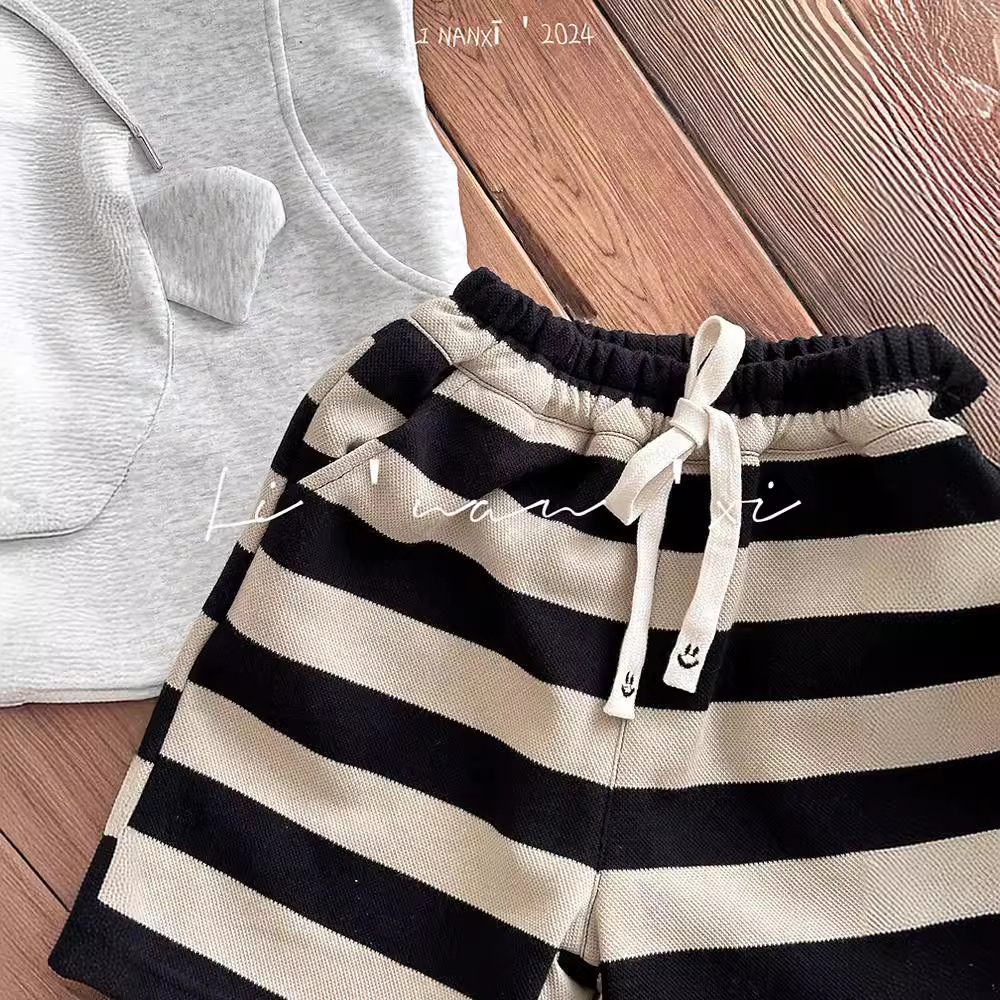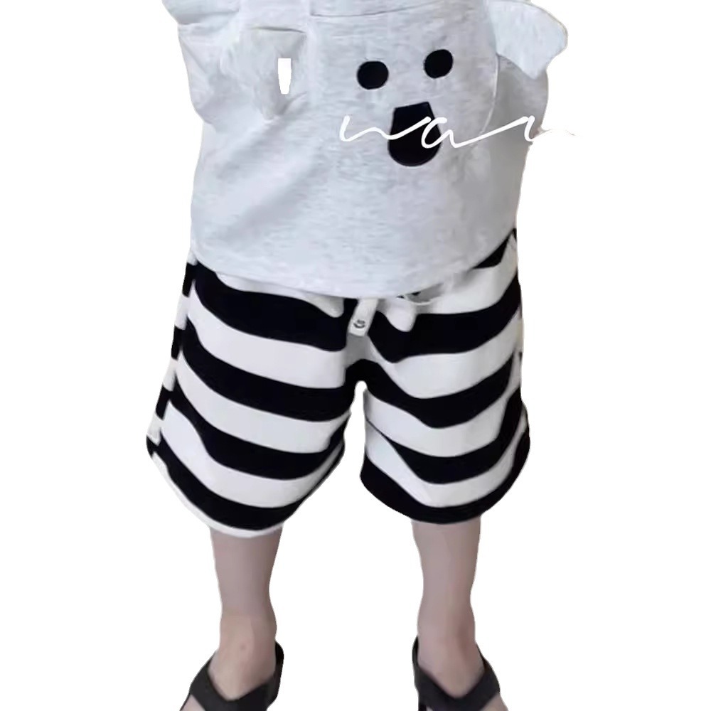 24夏新款儿童短裤男女童针织 条纹中裤3-8岁宝宝宽腿5分裤