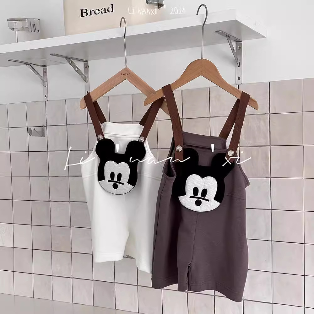24夏新款儿童背带裤男女童小米鼠绣花连体裤3-8岁宝宝可爱造型