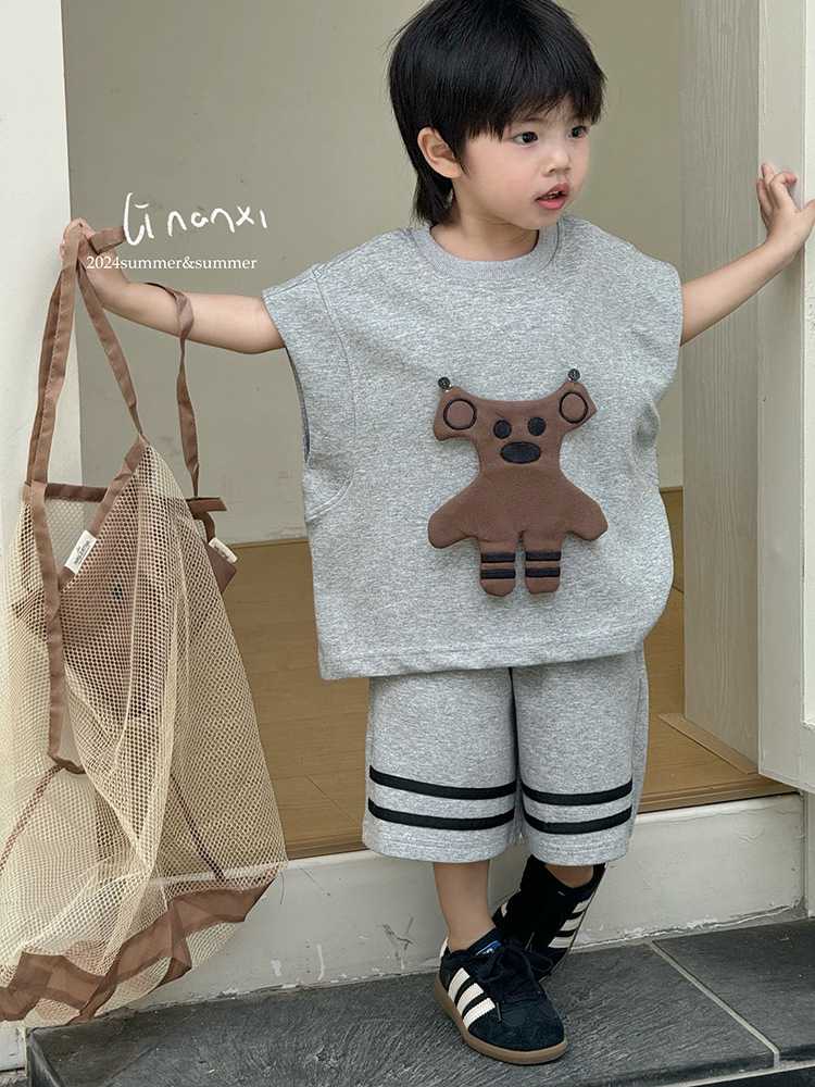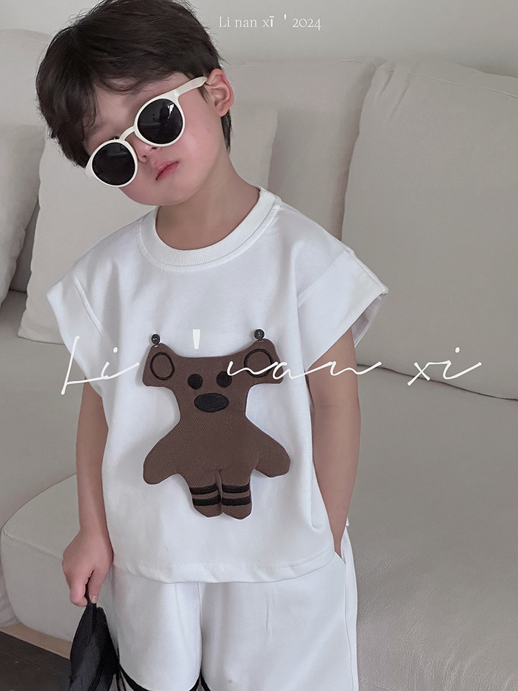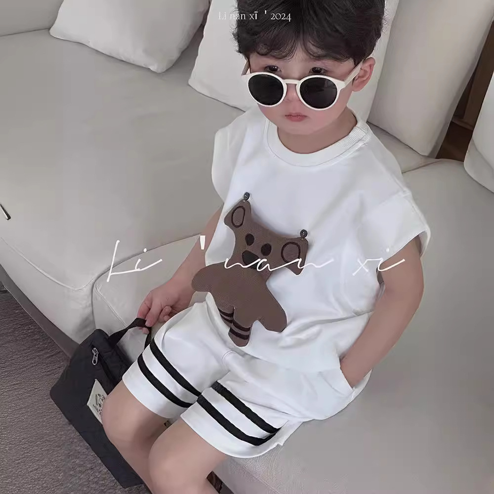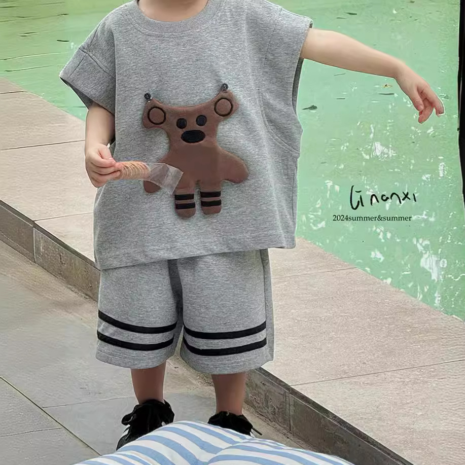 男童套装24年夏新款男女童可爱挂件两件套出街凹造型必备T恤+中裤