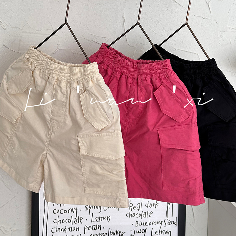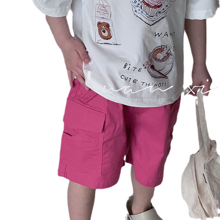 24夏新品儿童短裤a类弹力中裤纯色工装风立体口袋五份裤