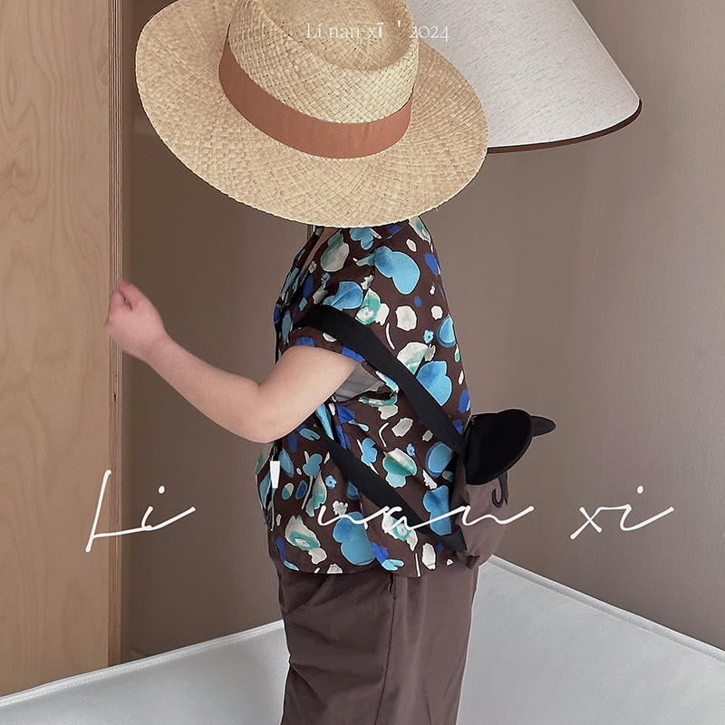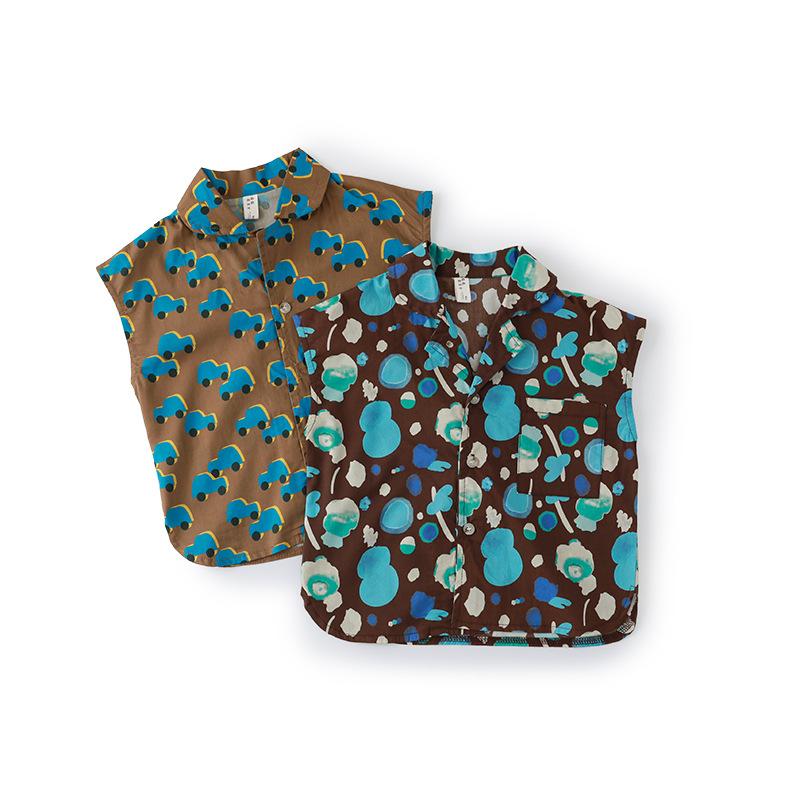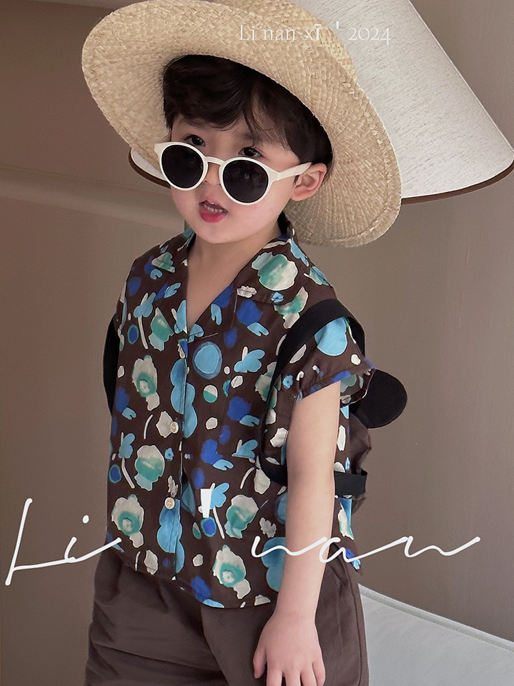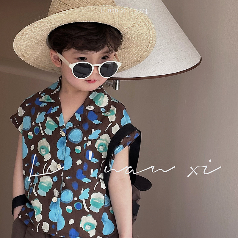 24夏季新款儿童无袖落肩衬衣全棉3-8岁儿童宝宝印花上衣
