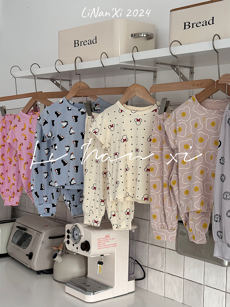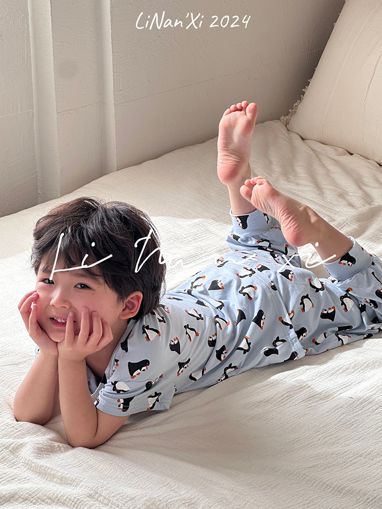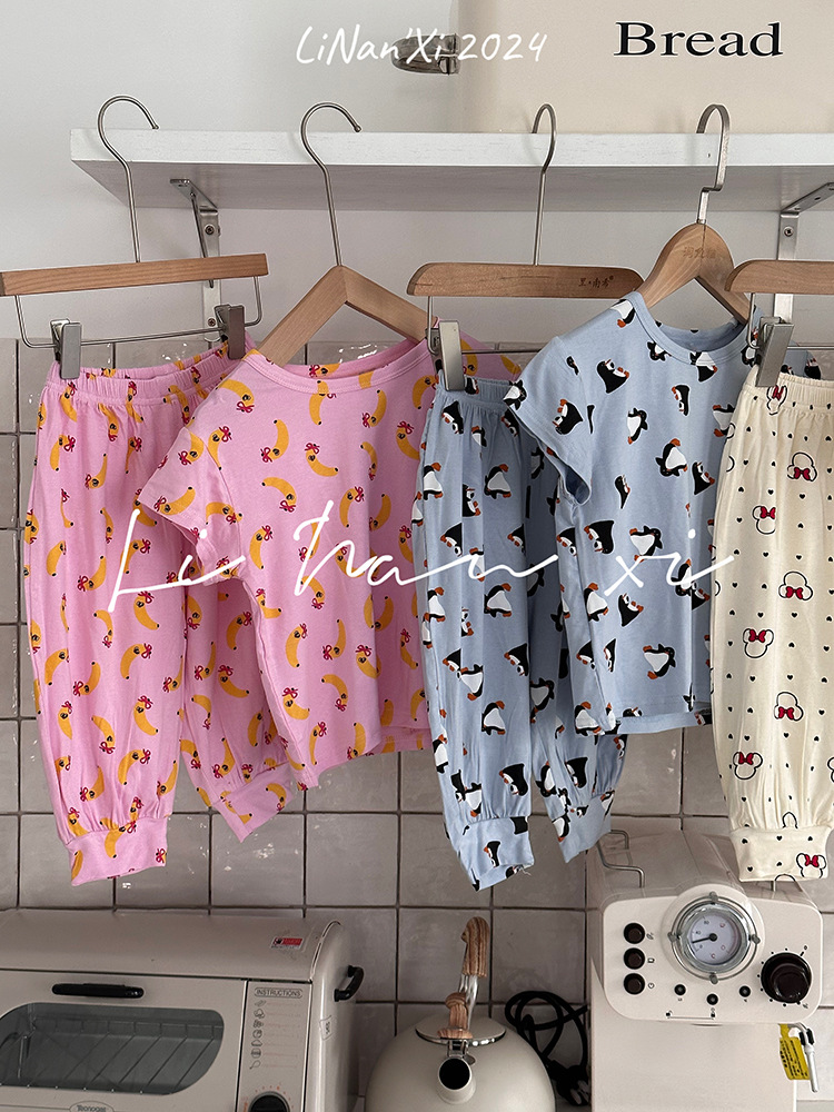 家居服儿童24夏新款男女童睡衣莫代尔印花短袖+长裤防蚊裤两件套