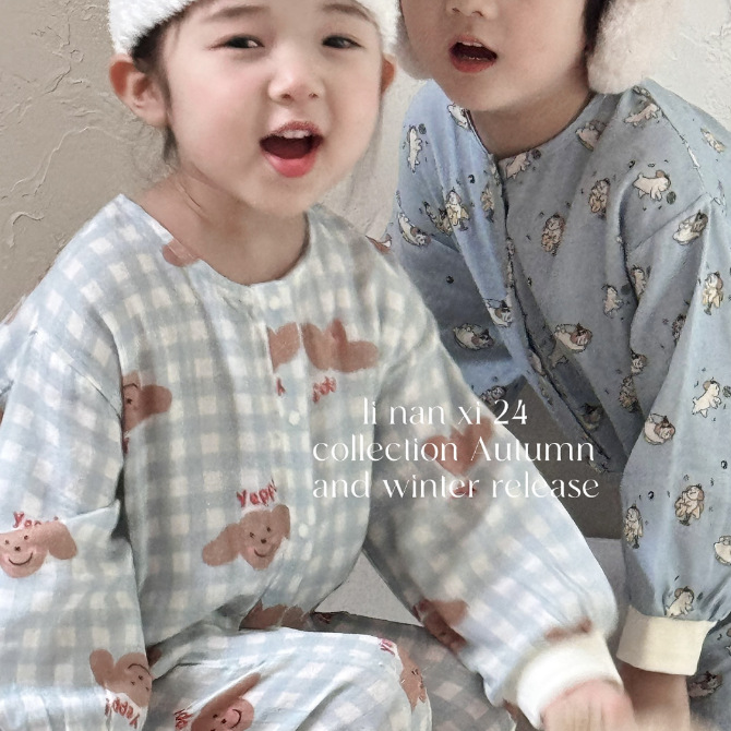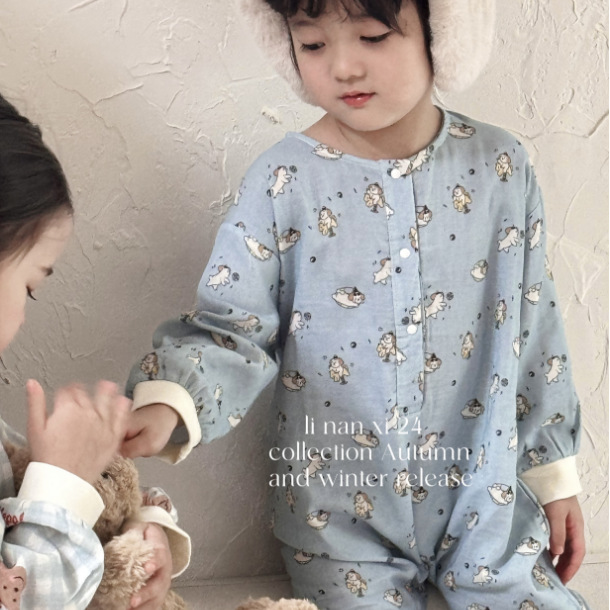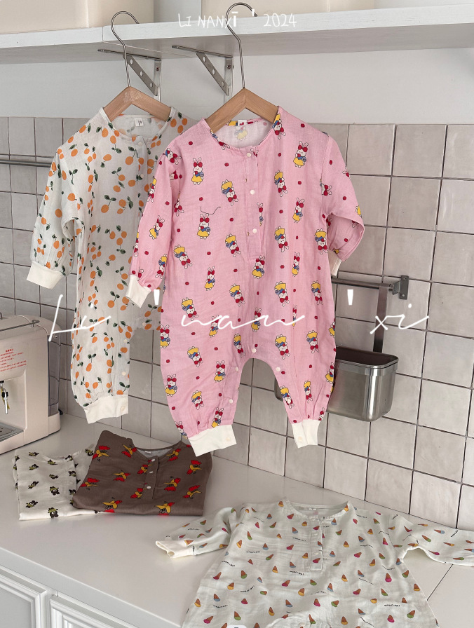 里南希儿童纯棉连体睡衣24年夏新款数码印花高密全棉哈衣爬服a类