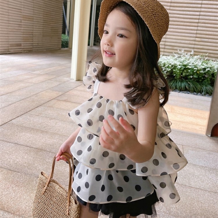 夏季女童背心吊带宝宝网红洋气儿童个性潮韩版时髦波点蛋糕雪纺衫