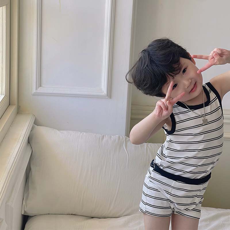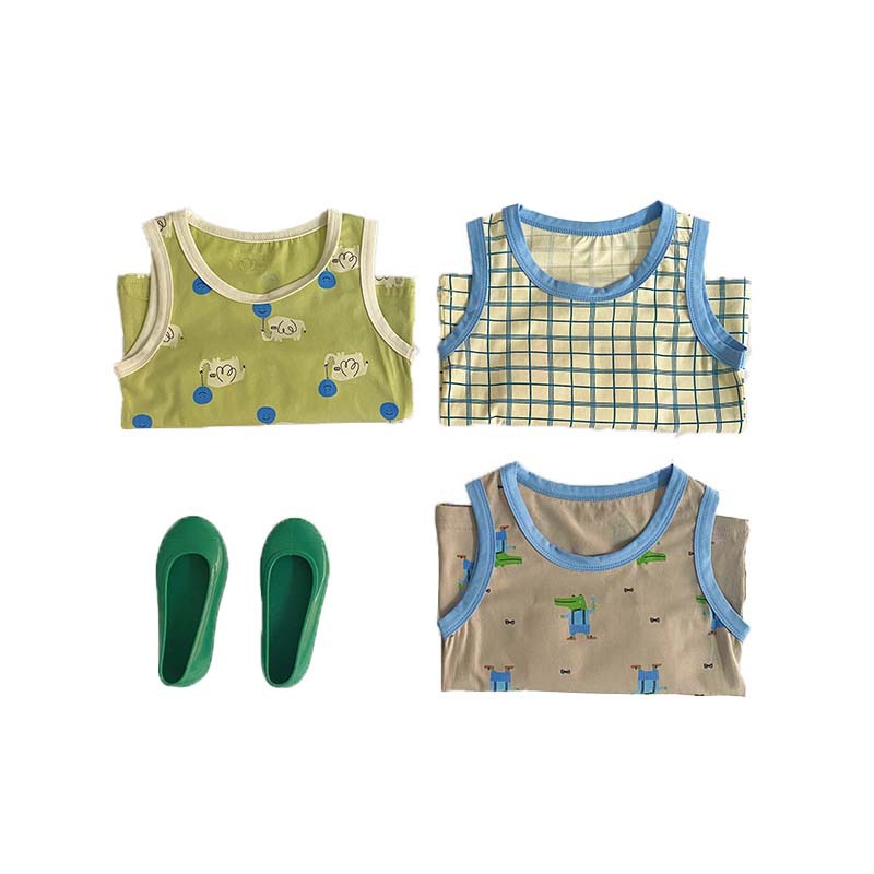 儿童背心针织印花背心宝宝薄款无袖t恤90-150码上衣 三件装