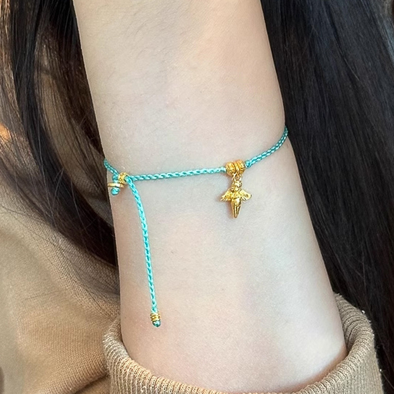 小红书爆款小天使流苏手链2025新款显白薄荷绿编绳金珠手绳手饰女