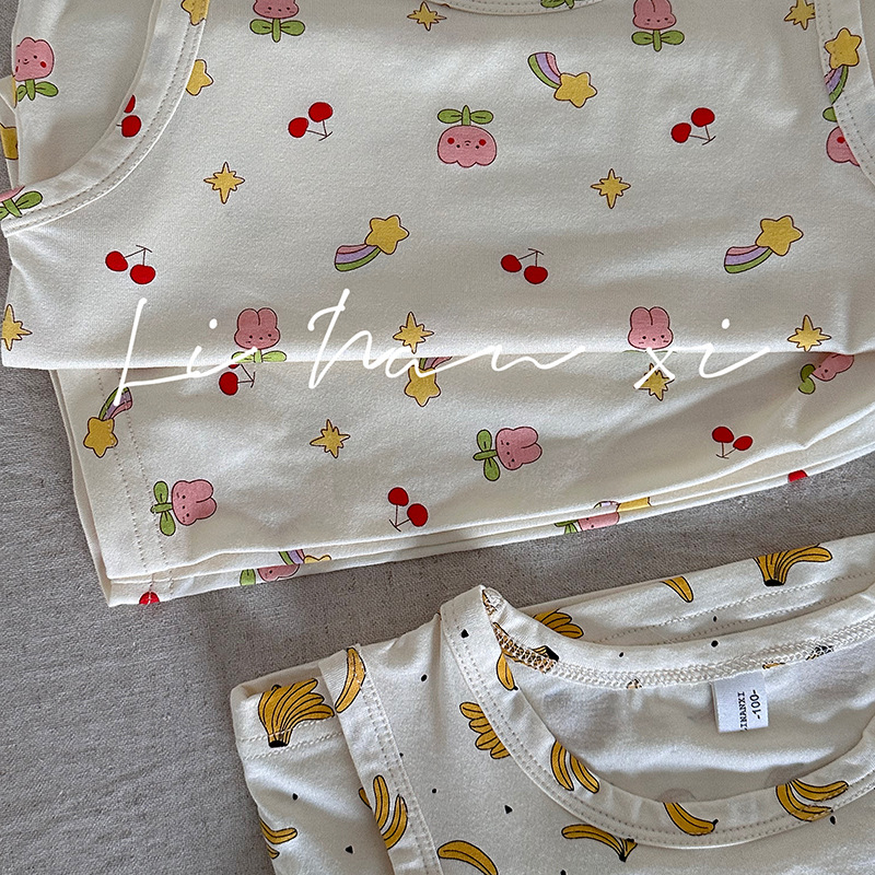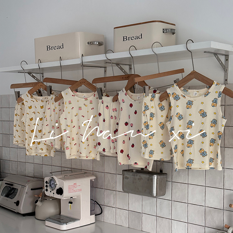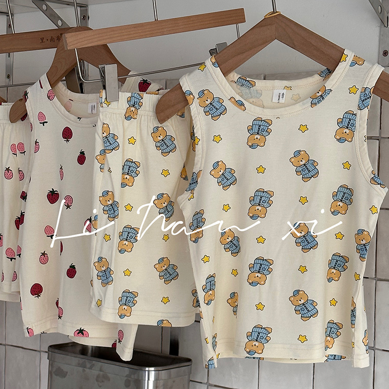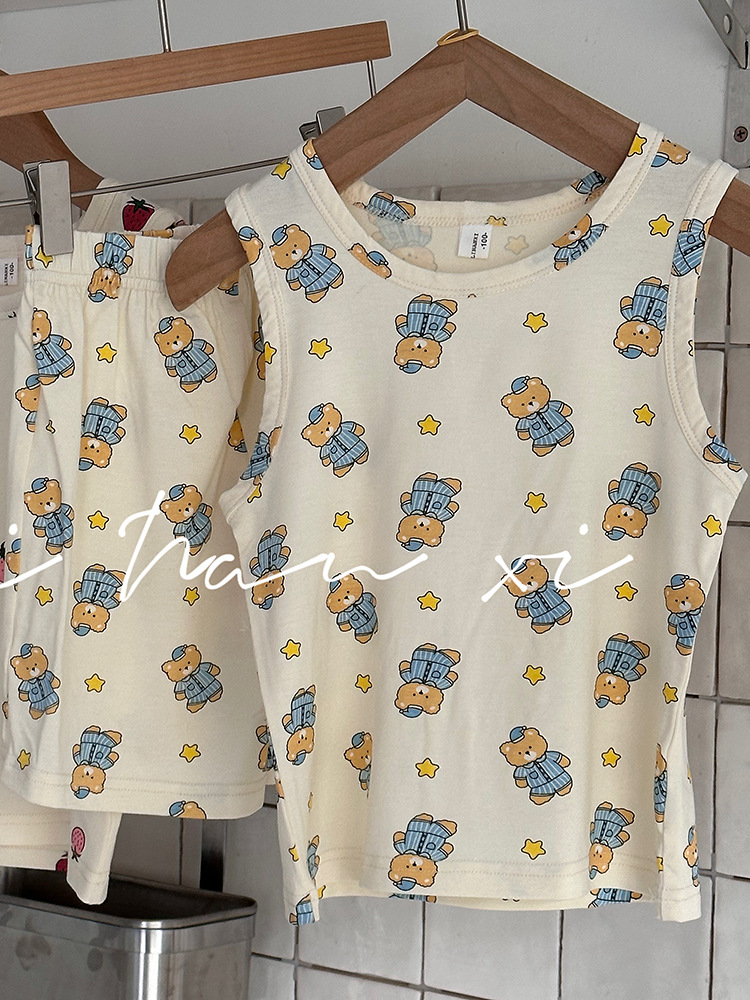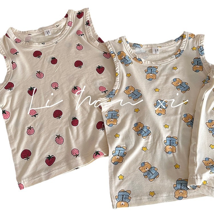 家居服儿童24夏新款男女童睡衣卡通两件套宝宝可爱印花无袖T+短裤