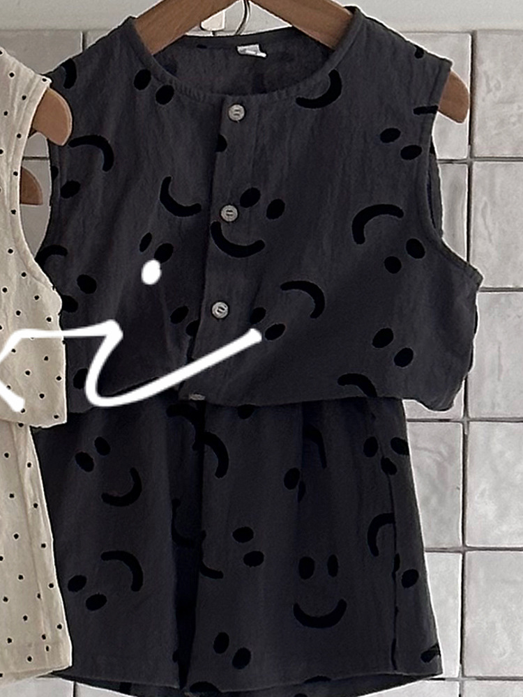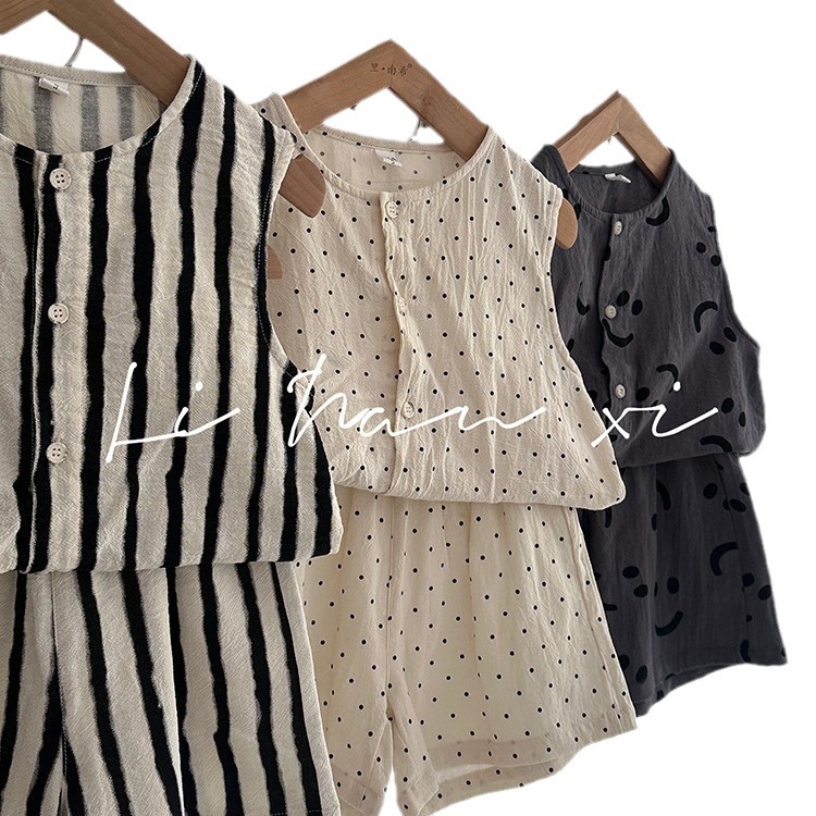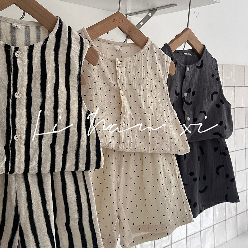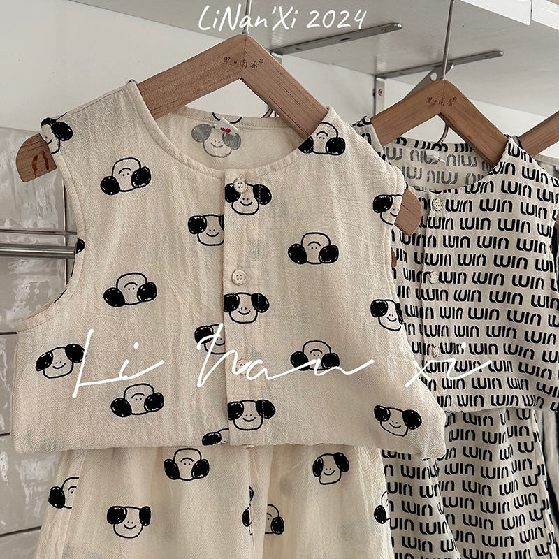 男童套装24夏新款全棉仿亚麻ins风两件套3-8岁宝宝无袖上衣中裤