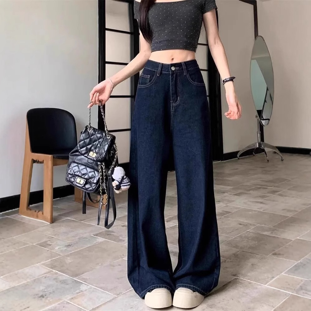 复古水洗阔腿牛仔裤女秋季新款高腰显瘦直筒裤百搭垂感拖地长裤子