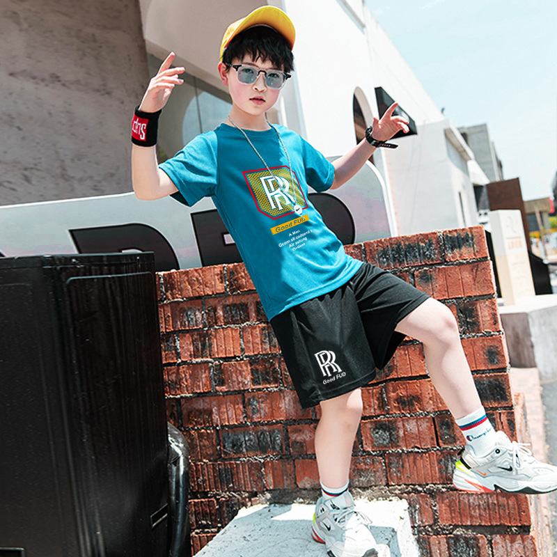 男童夏装两件套装夏季新款足蓝球服中大童洋帅气儿童速干衣潮