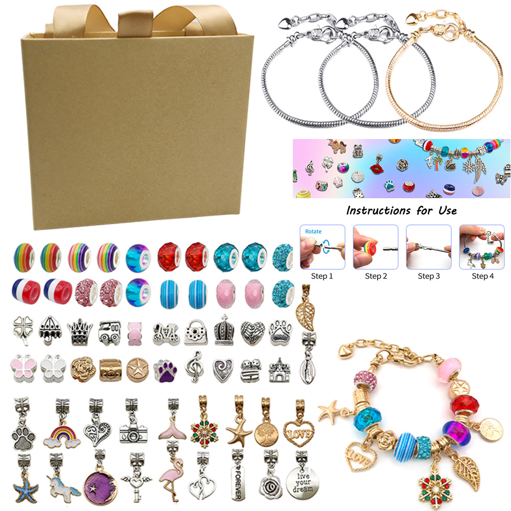 粉色礼盒套装 7色亚马逊热卖儿童diy手工水晶手链饰品女送礼手串