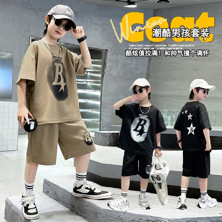 男童短袖套装夏装新款中大童洋气酷帅男孩夏季时髦儿童网红潮