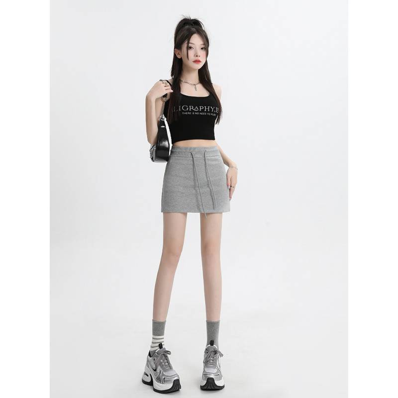 辣妹抽绳半身裙夏季新款高腰显瘦包臀A字灰色小个子运动短裙