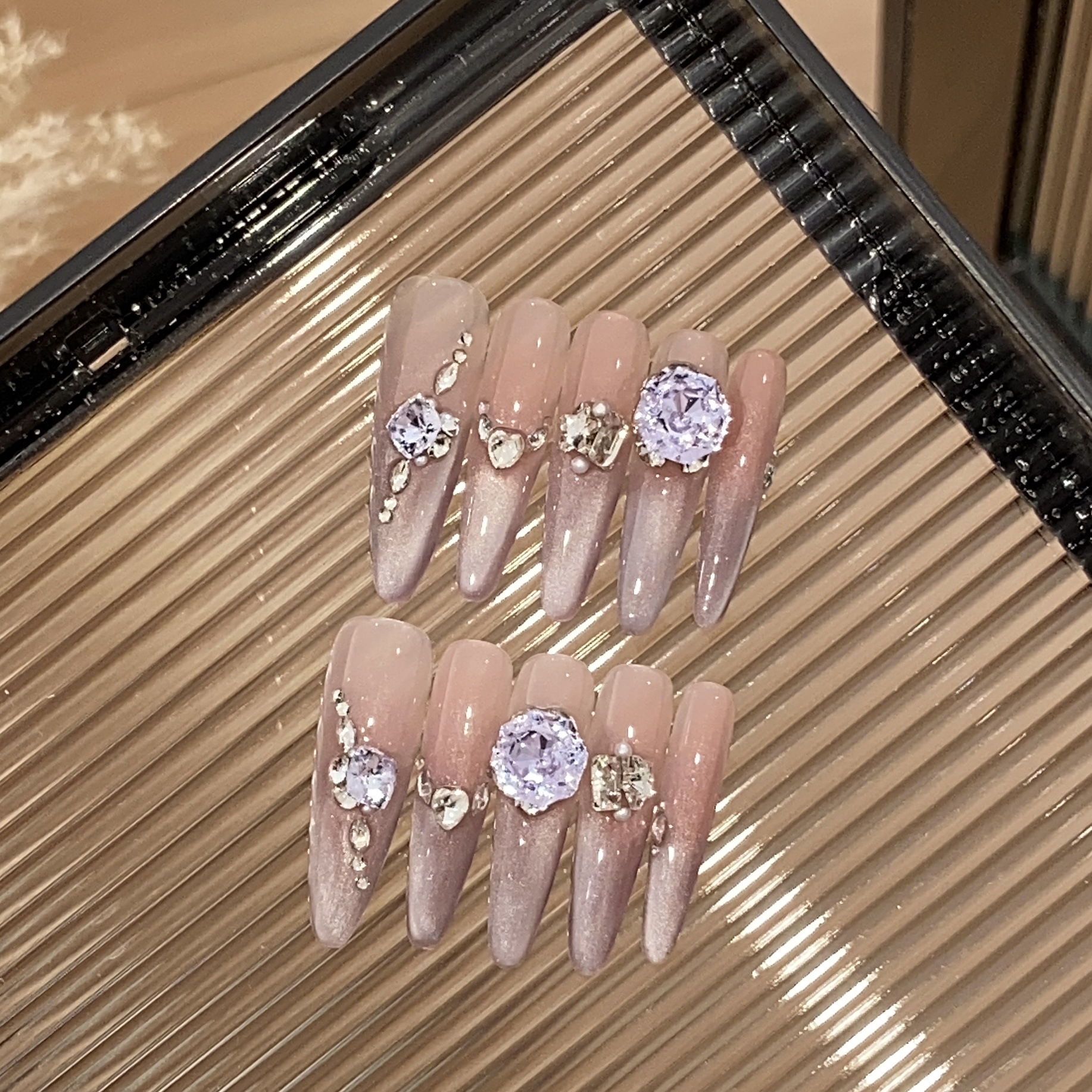 一只顾【云纱黎雾】 轻奢感渐变紫色斜边碎钻猫眼紫色K9穿戴甲