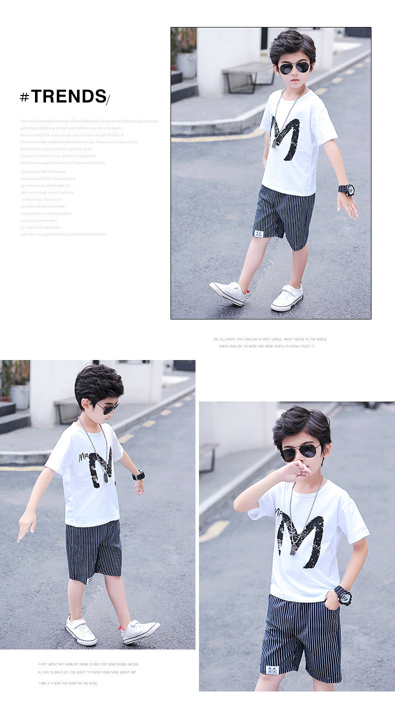 新款儿童男童套装短袖中大童宝宝夏装运动两件套童装