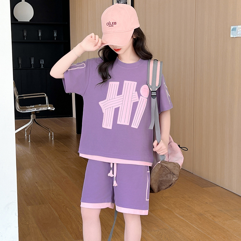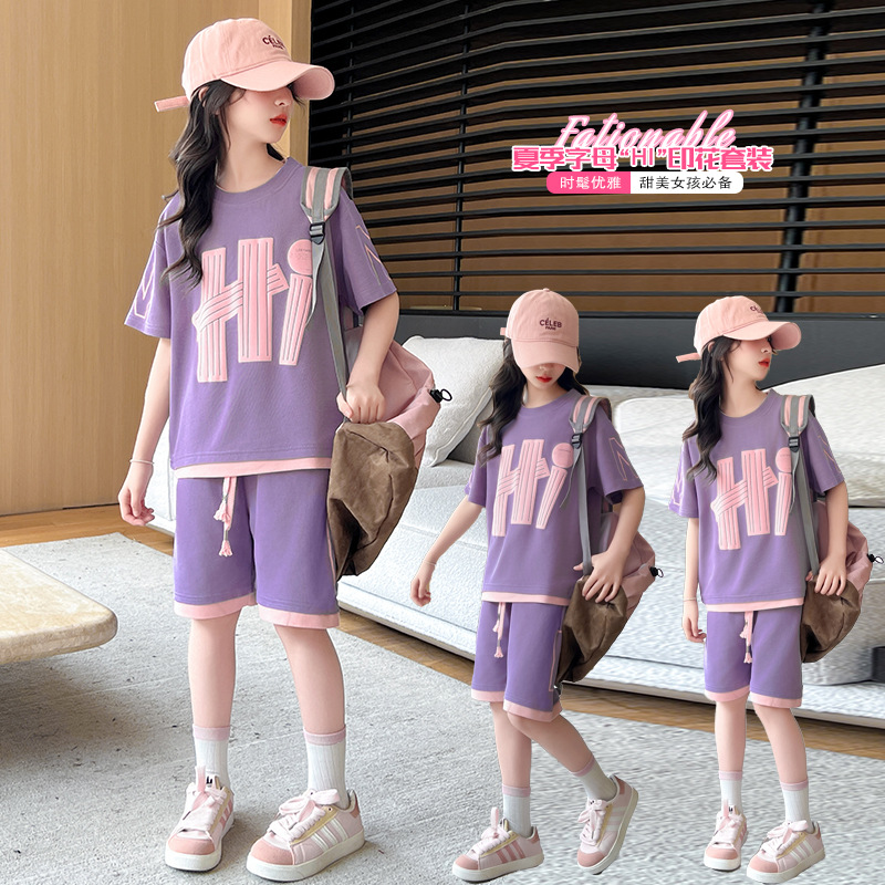 女孩短袖套装夏装新款中大童洋气酷帅女童夏季时髦儿童网红潮