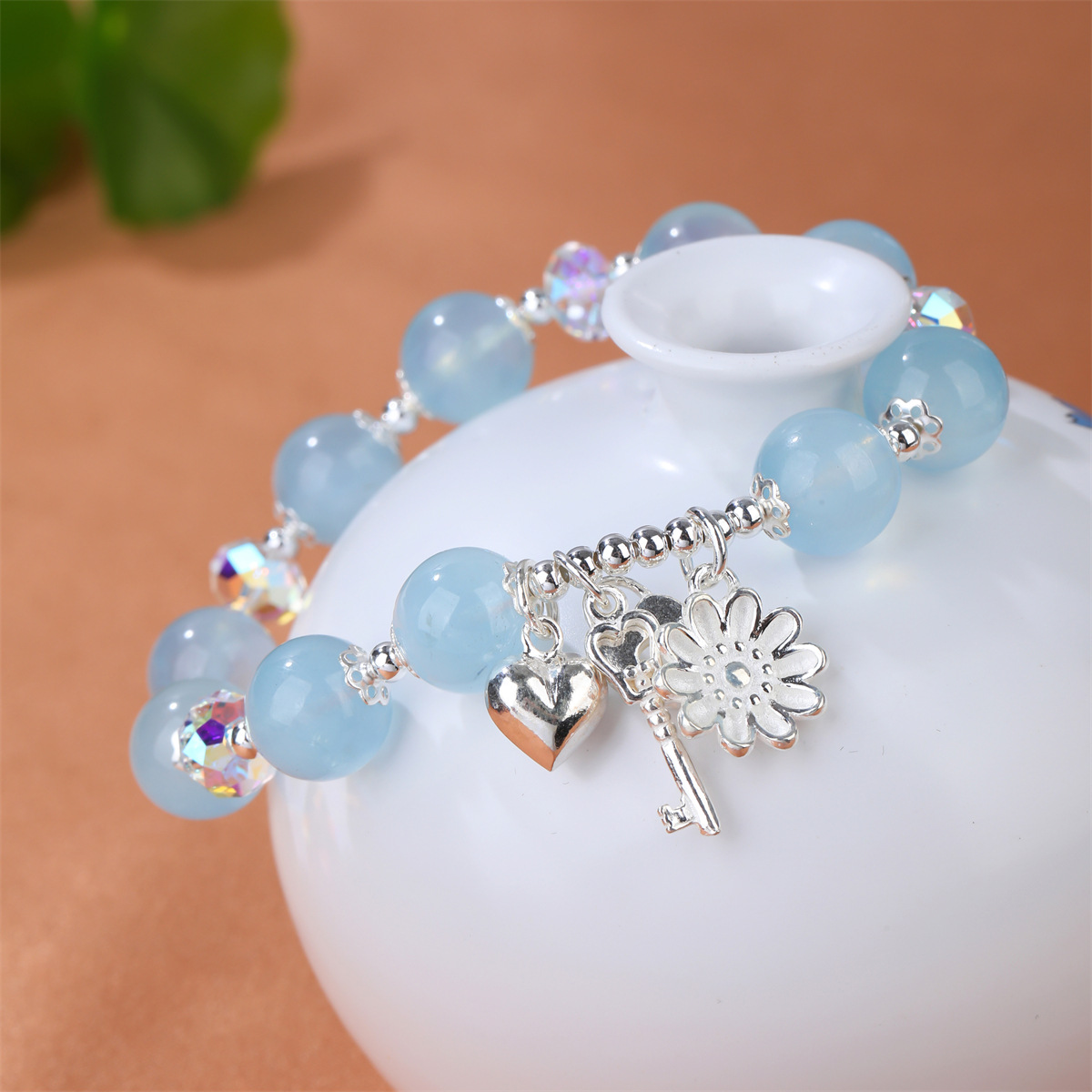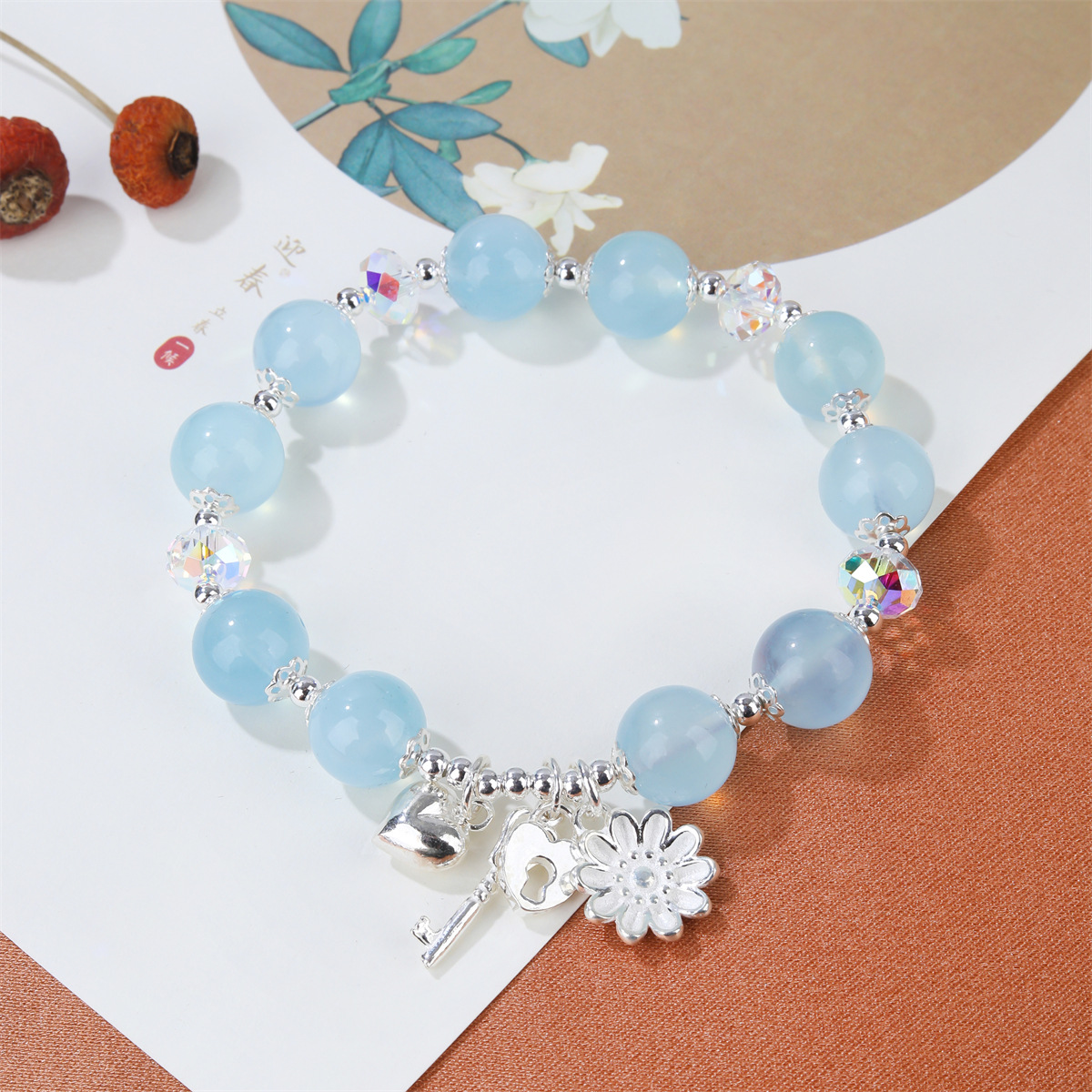 天然海蓝宝纯银同心锁雏菊手链批发海蓝宝同心锁雏菊手串天然水晶