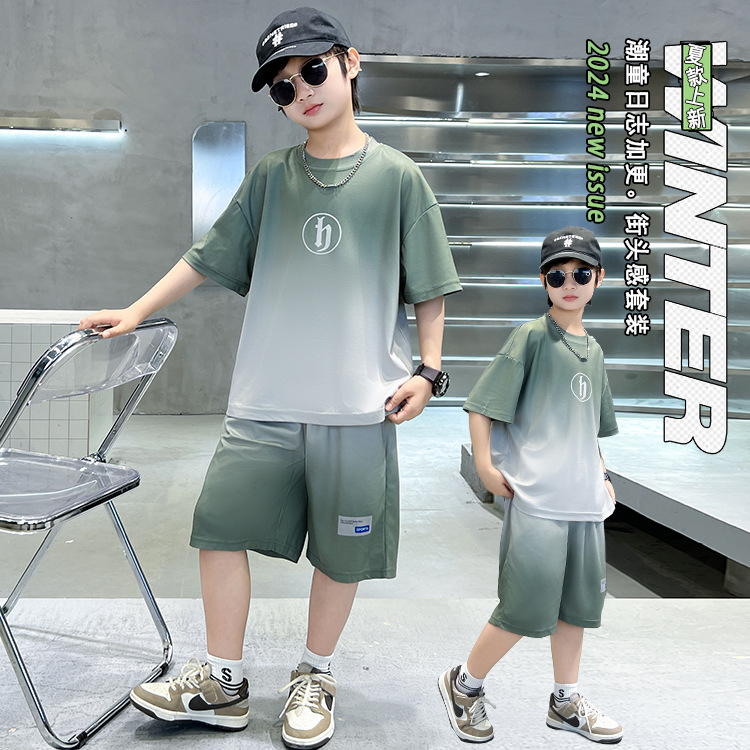 儿童短袖套装中大童运动服男童休闲夏装男孩速干衣夏季两件套帅气
