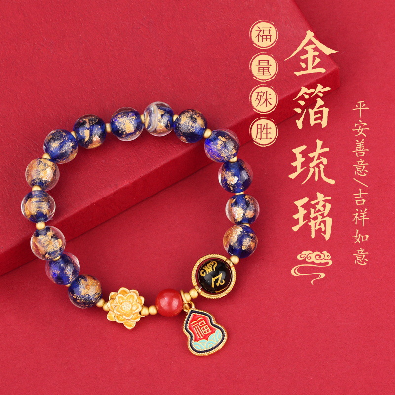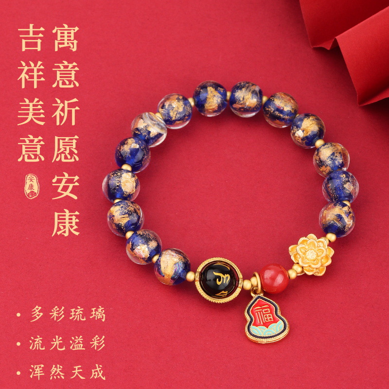六字真言转运珠莲花福牌金箔香灰琉璃手链串珠手串情侣款生日礼物