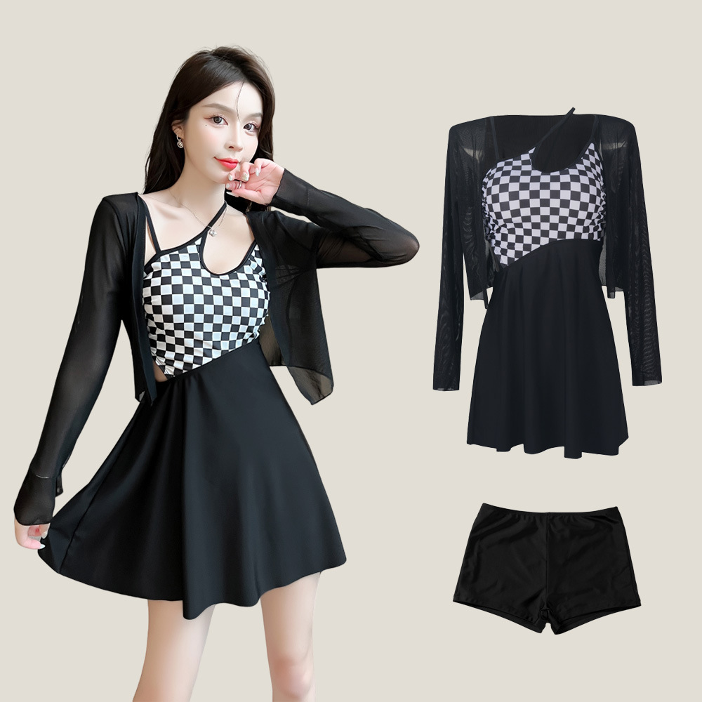 韩版比基尼三件套分体泳衣女挂脖系绳露背紧身半裙独立泳裤泳衣