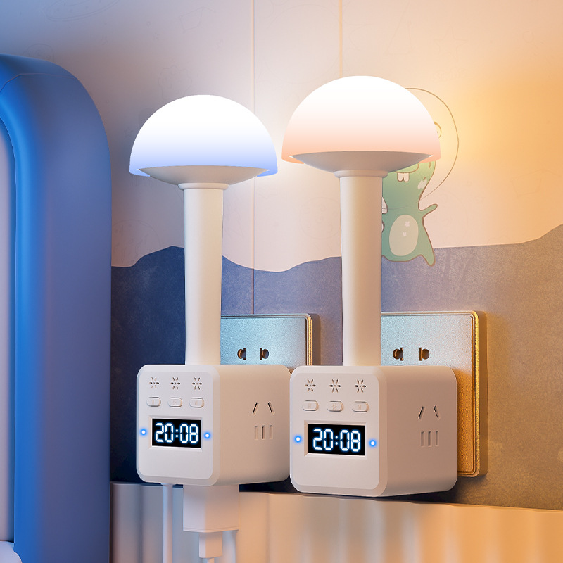 智能语音七彩小夜灯多功能数显时钟插座转换插头卧室床头灯带闹钟
