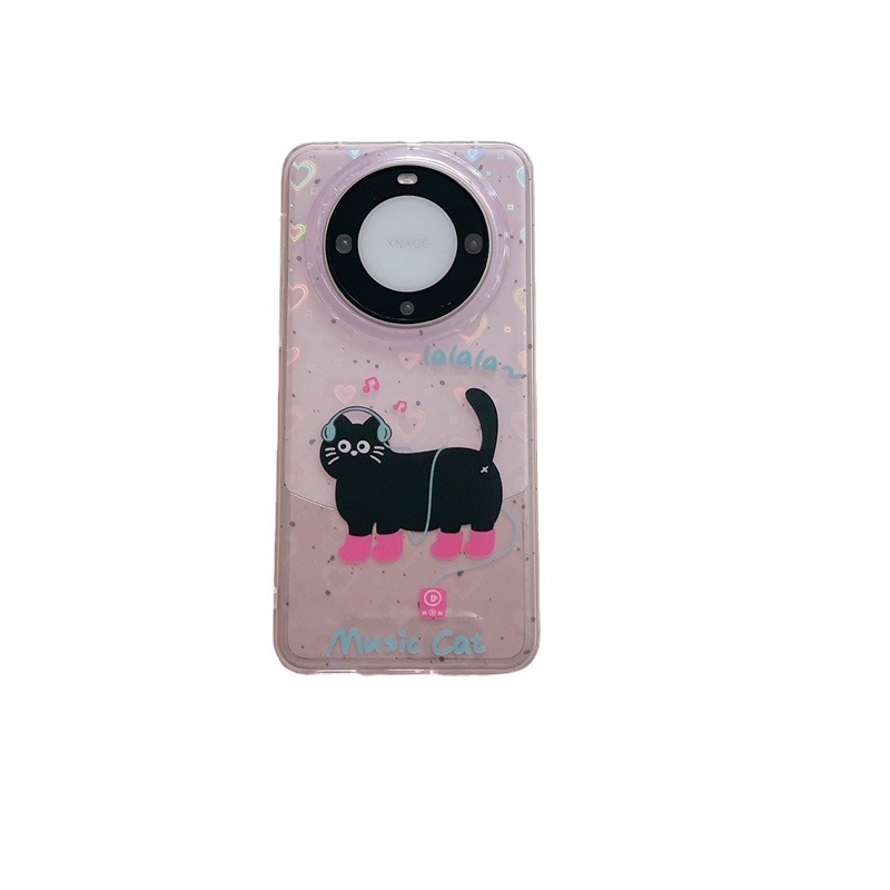 镭射爱心戴耳机黑猫适用mate60pro+手机壳P70Pro情侣pura70保护套