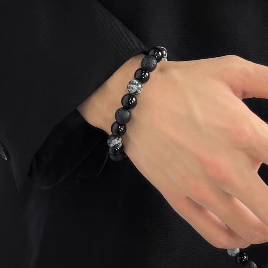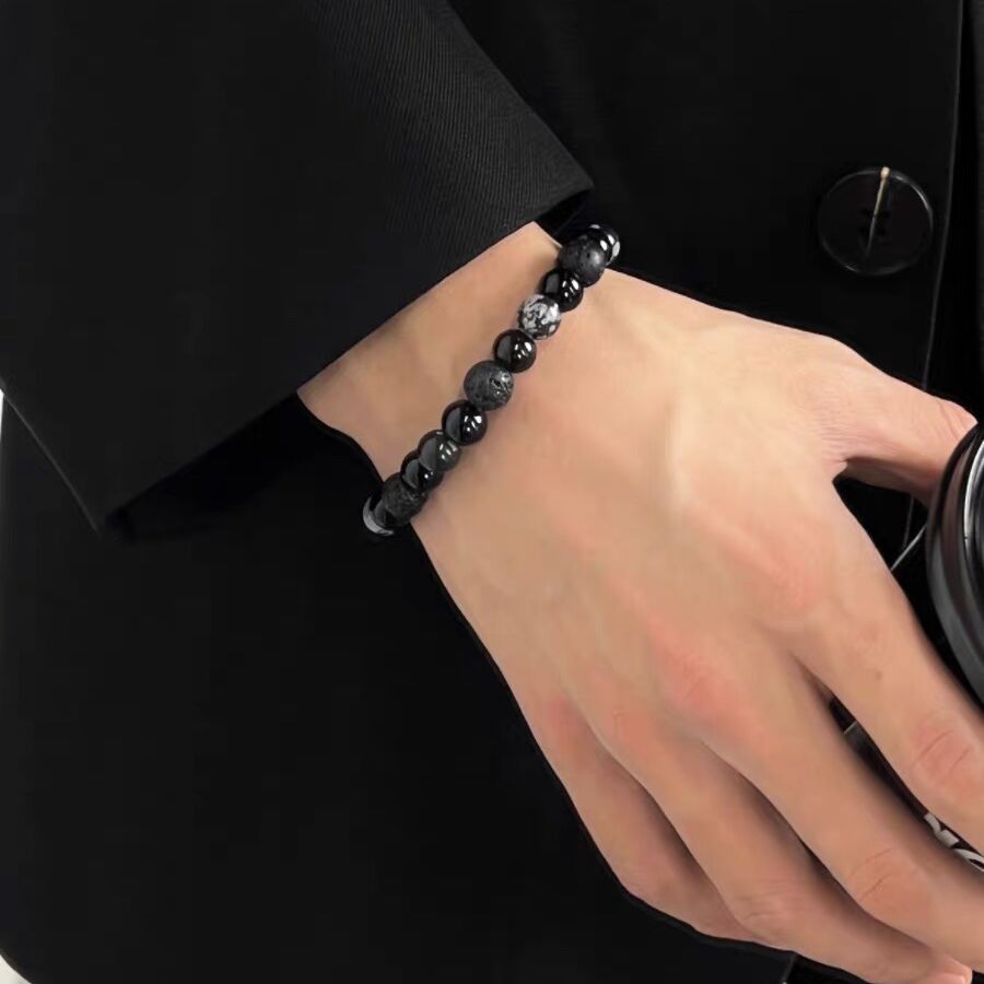 暗黑风黑曜石串珠手链男女轻奢小众高级感情侣款手饰火山石饰品潮