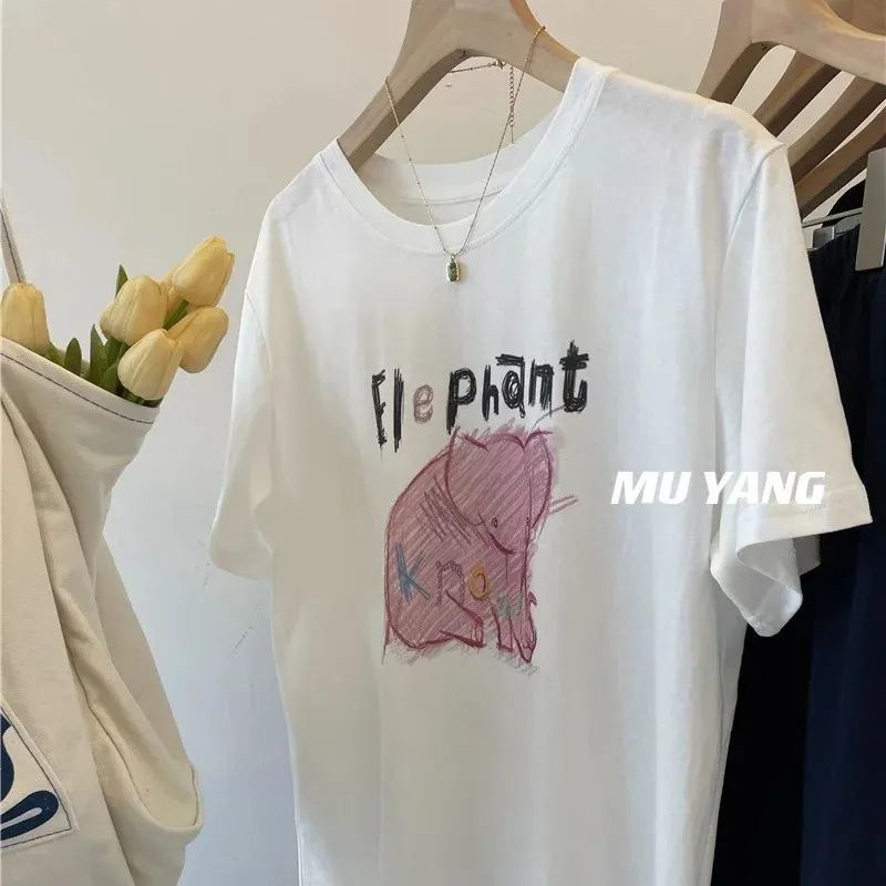 超手感莫代尔正肩短袖t恤女夏季设计感宽松休闲印花打底衫上衣潮