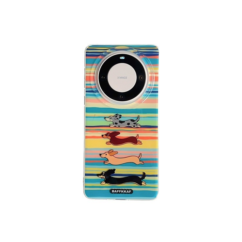 创意条纹趣味腊肠狗适用华为P70Pro+手机壳mate60Pro/50/40保护套