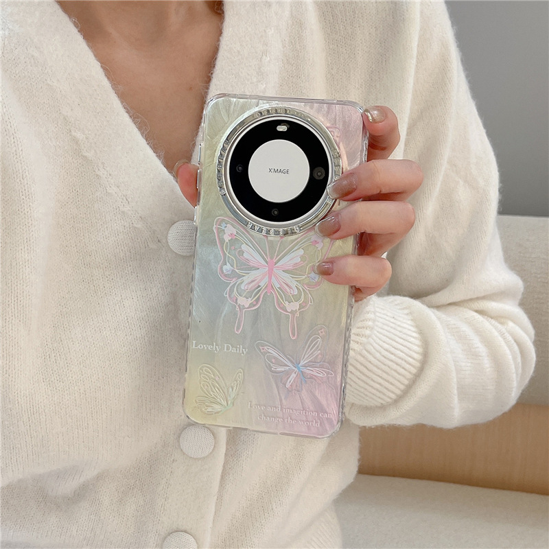 双层电镀壳 轻纱彩色渐变线条蝴蝶