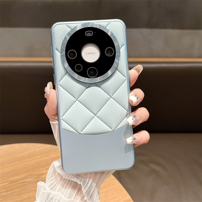 高档皮质格纹手机壳适用华为mate60防摔保护套mate60pro+电镀60p