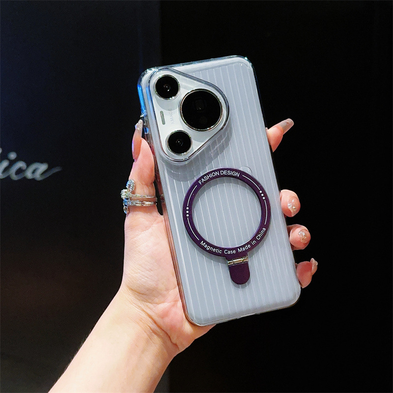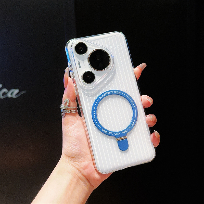 适用华为pura70 pro手机壳p70pro+透明瓦楞华为pura70磁吸支架p70