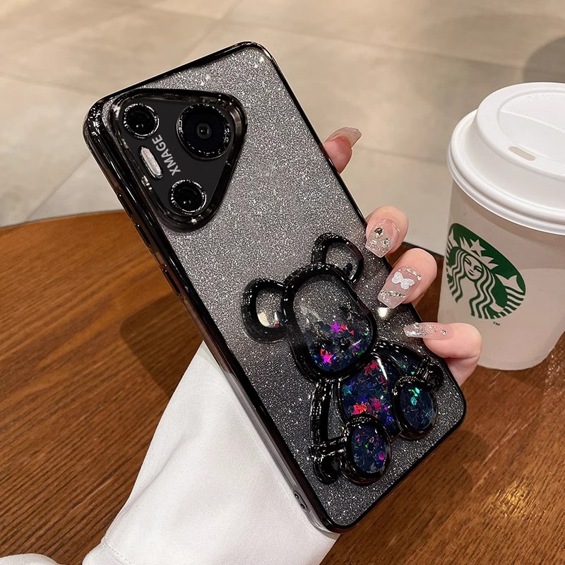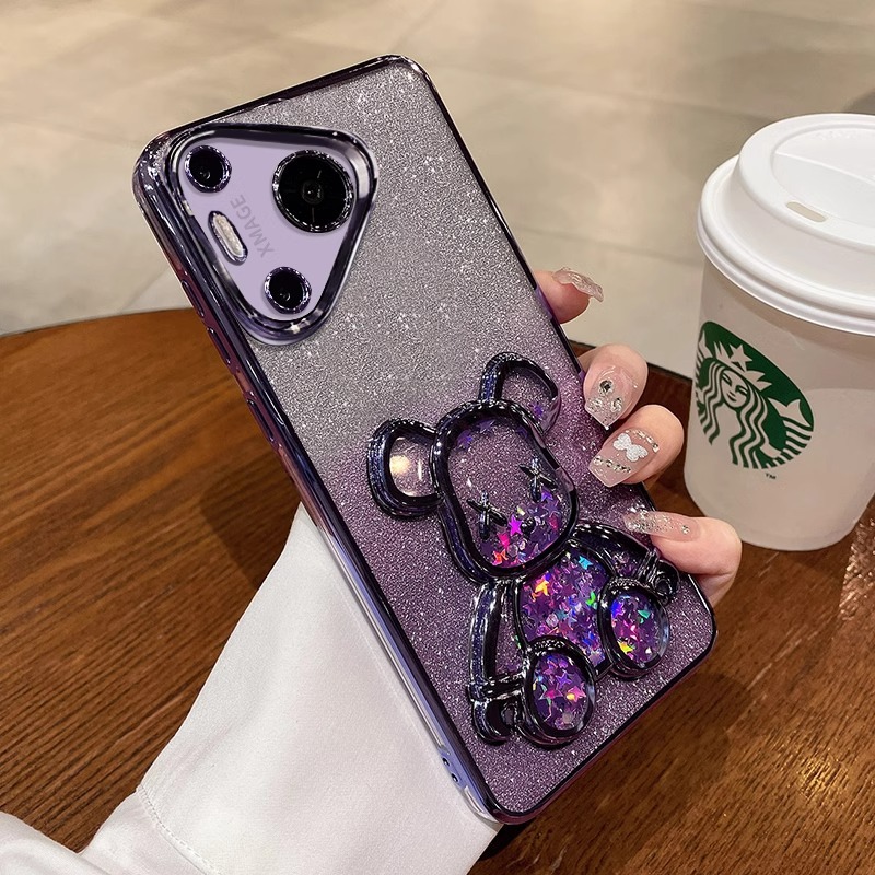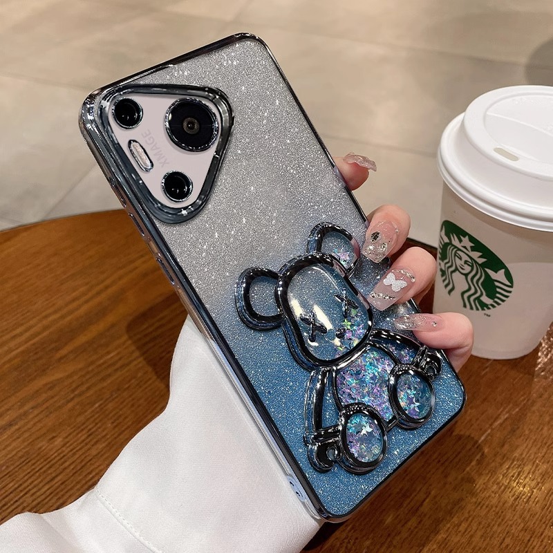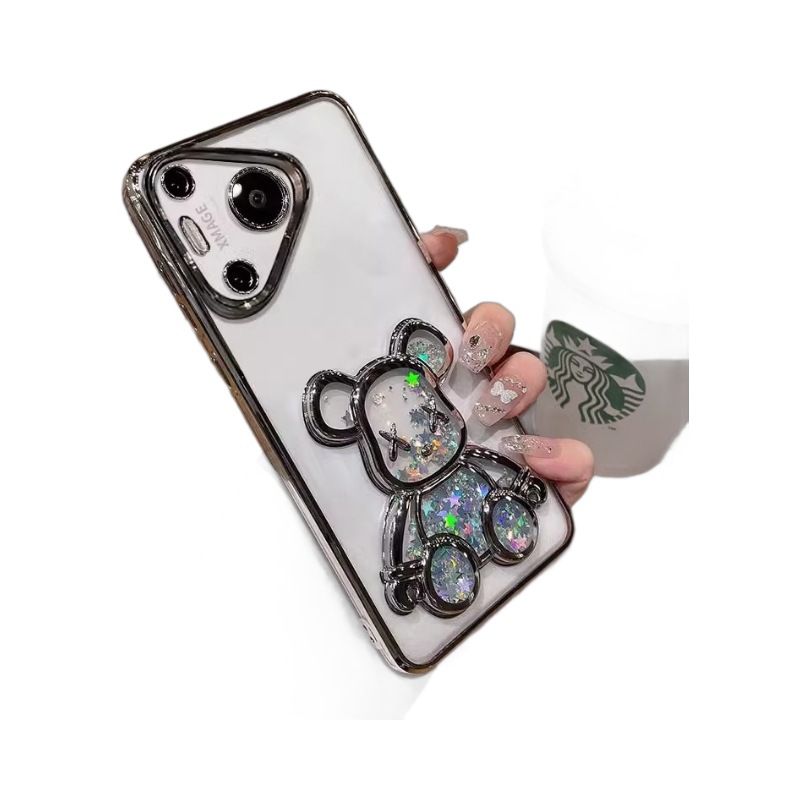 潮牌电镀流沙暴力熊适用华为p70pro新款手机壳p70软壳70卡通pro韩