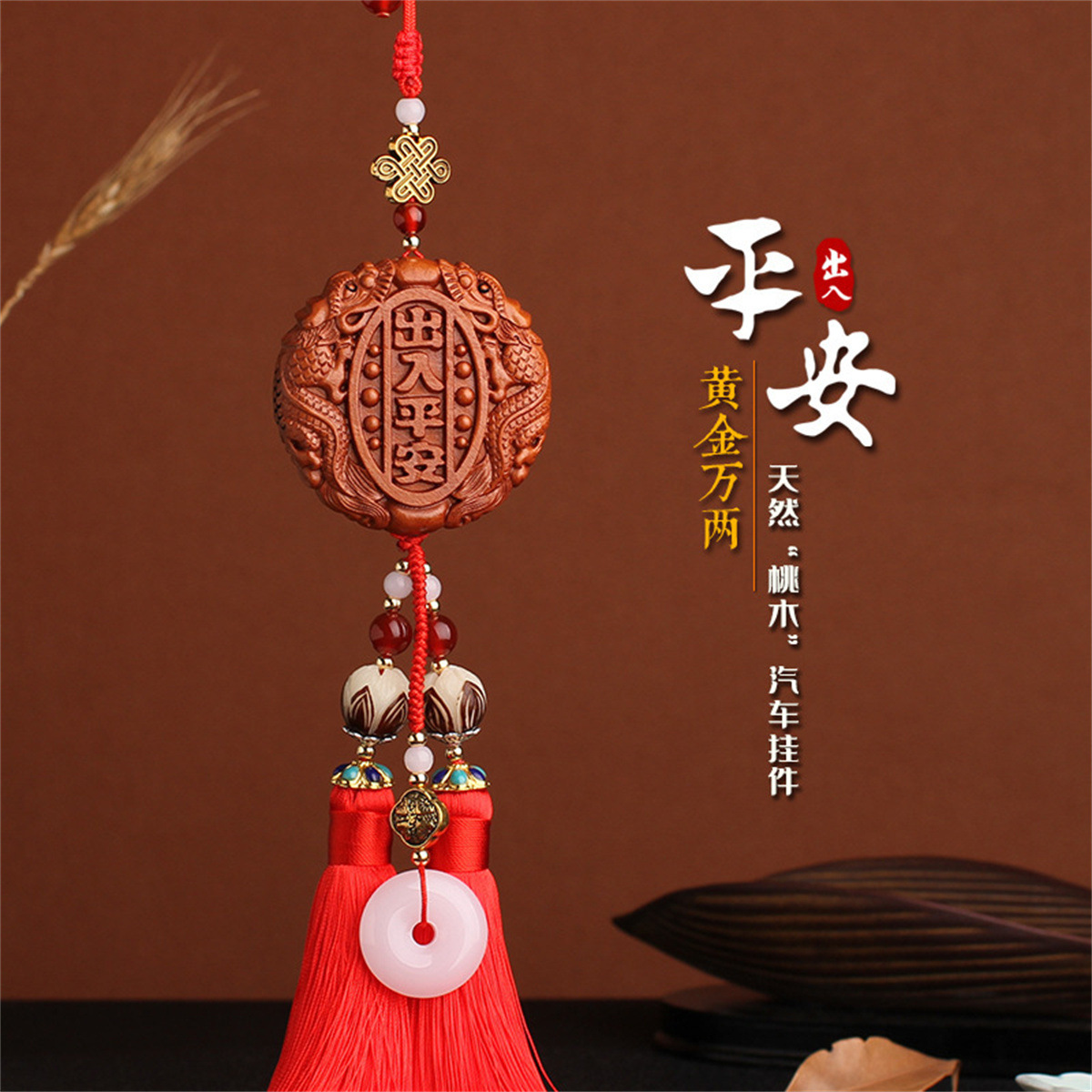 汽车挂件车内吊饰桃木车载后视镜男士高档吊坠出入保平安符装饰品