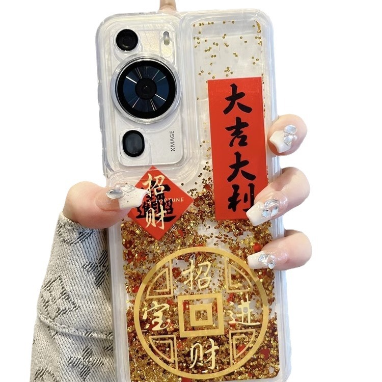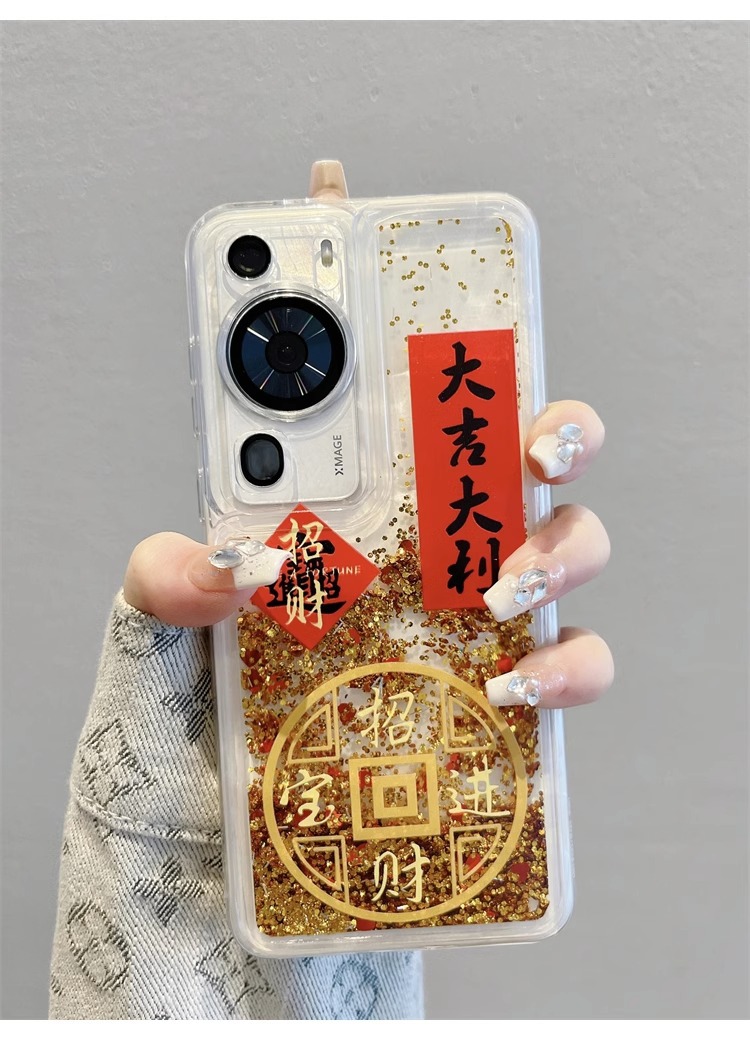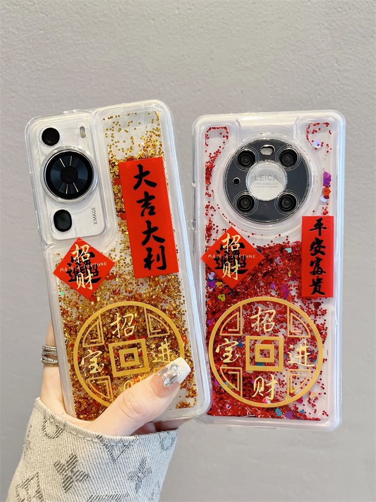 中国风创意文字招财进宝流沙适用华为mate60手机壳p50pro防摔软40