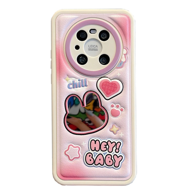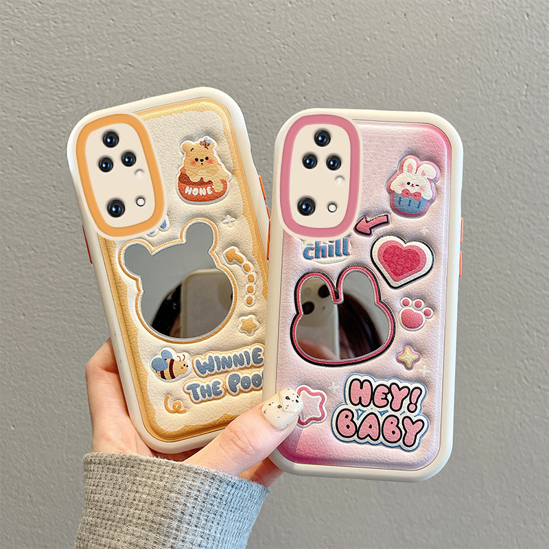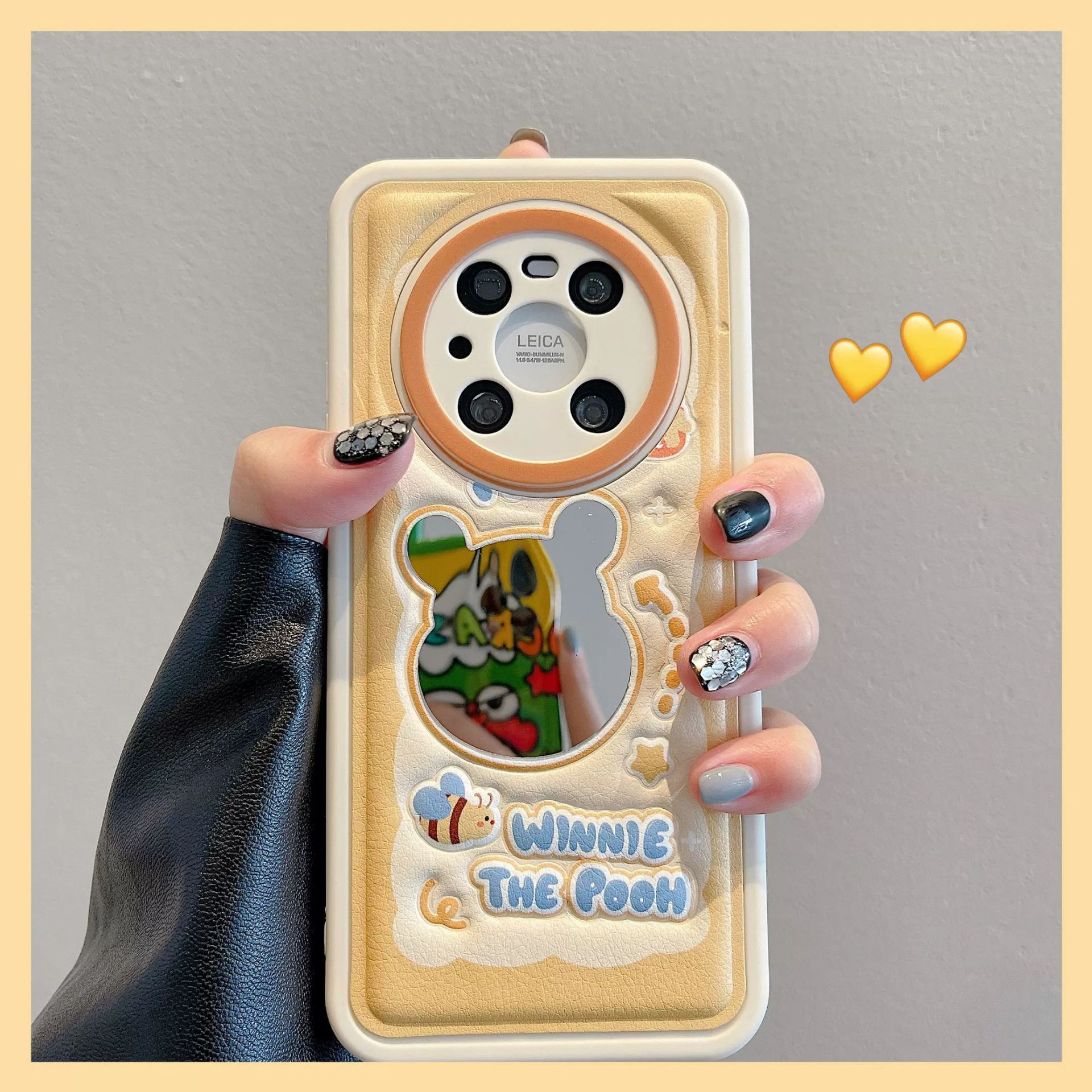 卡通小熊补妆镜子适用华为mate50Pro手机壳p40皮质30网红女荣耀50