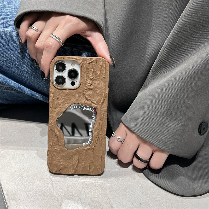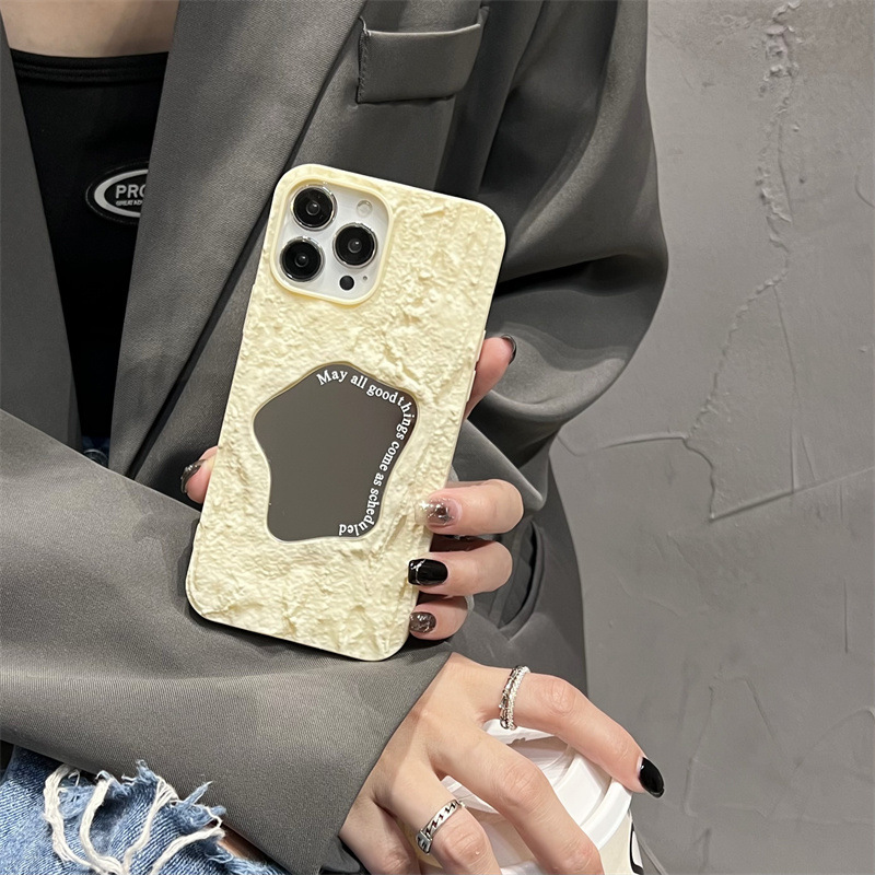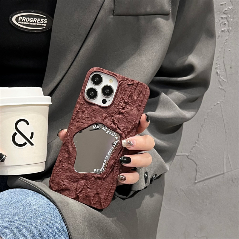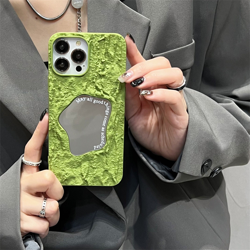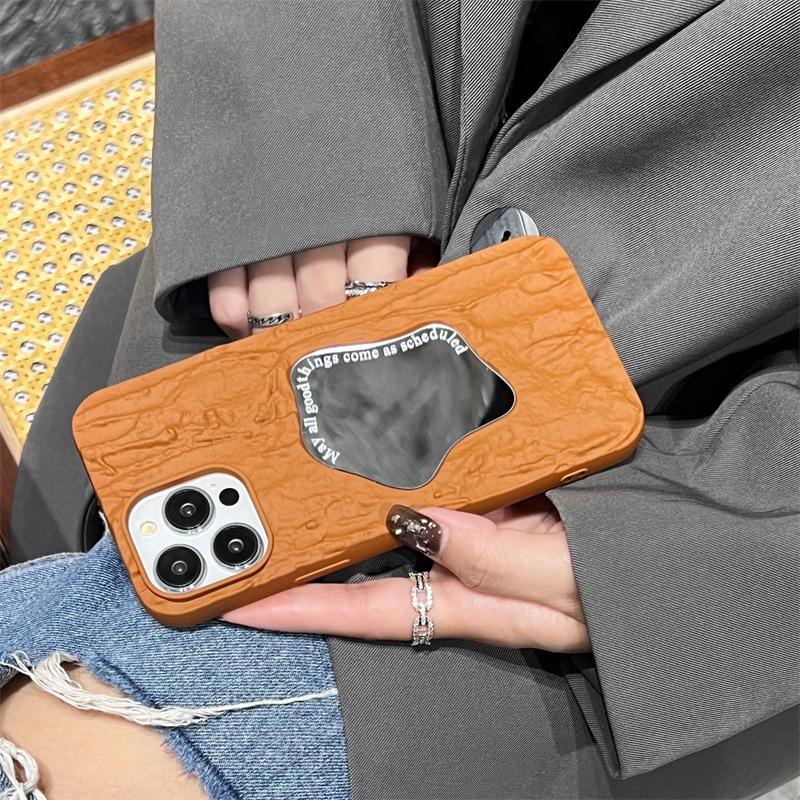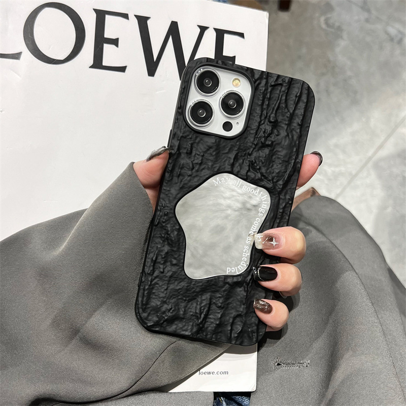 ins秋冬褶皱纹镜面适用苹果14手机壳iPhone15promax简约13/12软11