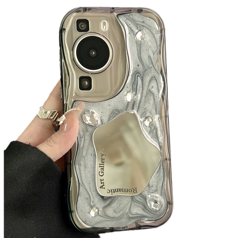 高档钻石墨画几何镜面适用华为mate60pro手机壳p40小众荣耀90女n8