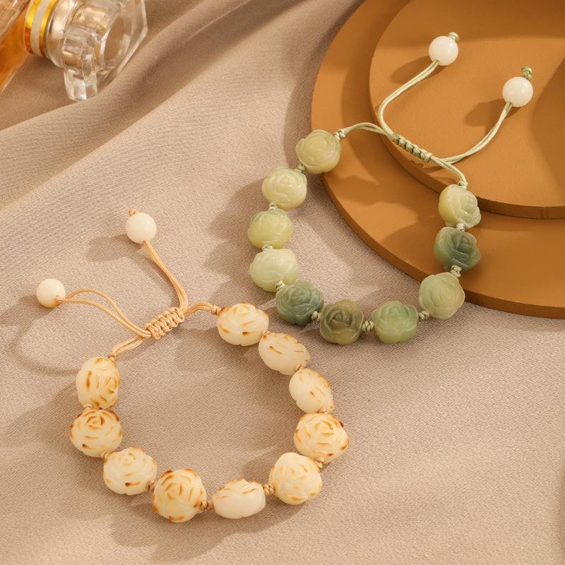 山茶花系列炭烧菩提手串新中式古风渐变学生玫瑰花手链地摊饰品