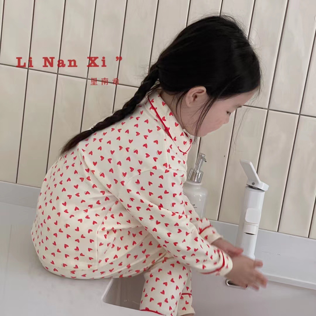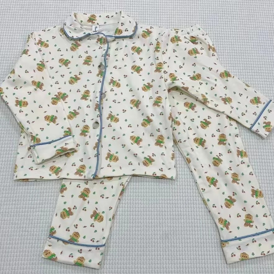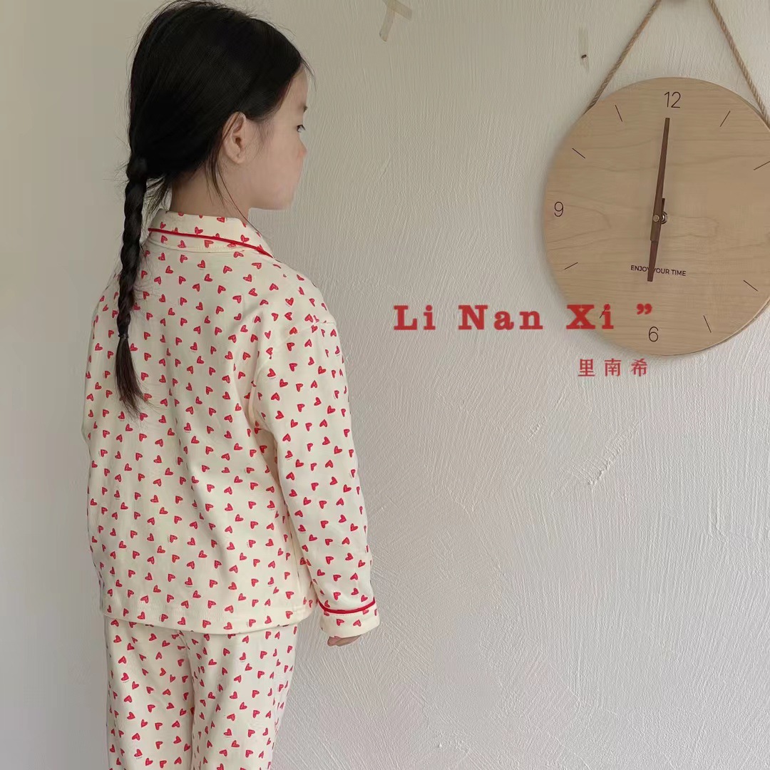 x25003-1里南希24春季新款韩版儿童可爱家居服羊毛拉架印花睡衣套