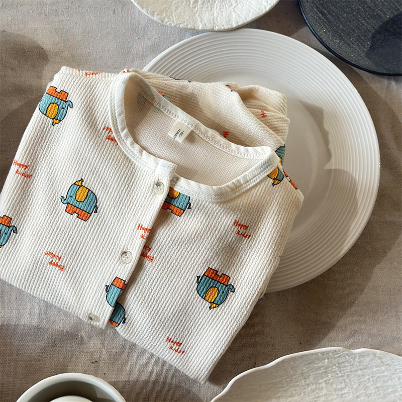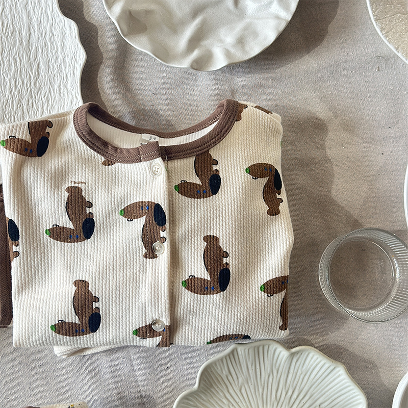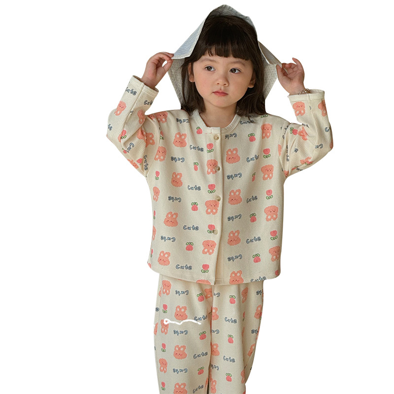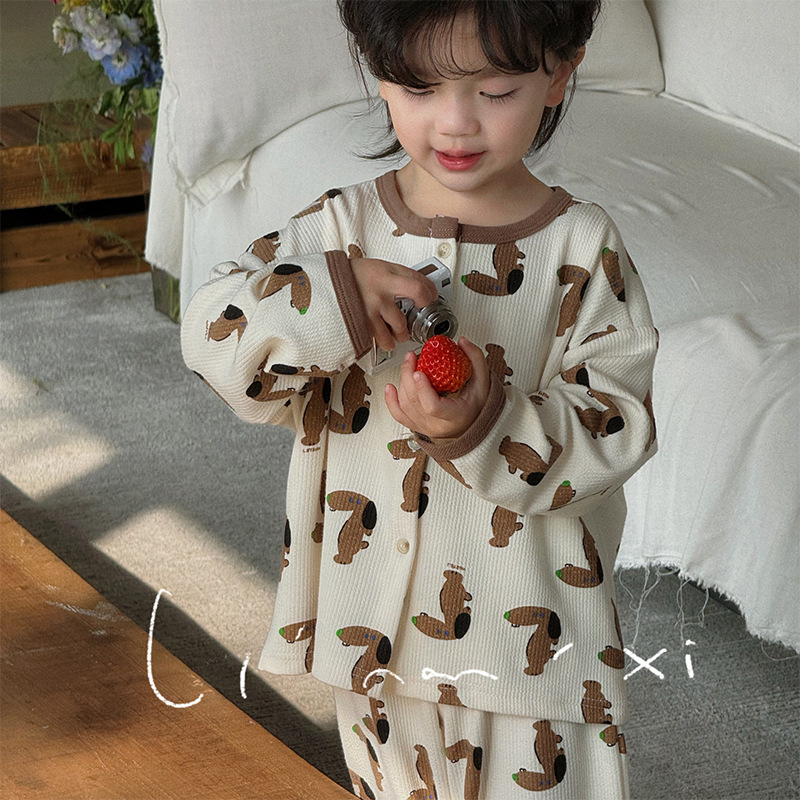30061家居服套装24春款新品睡衣套印花家居套装开衫套男女童中性